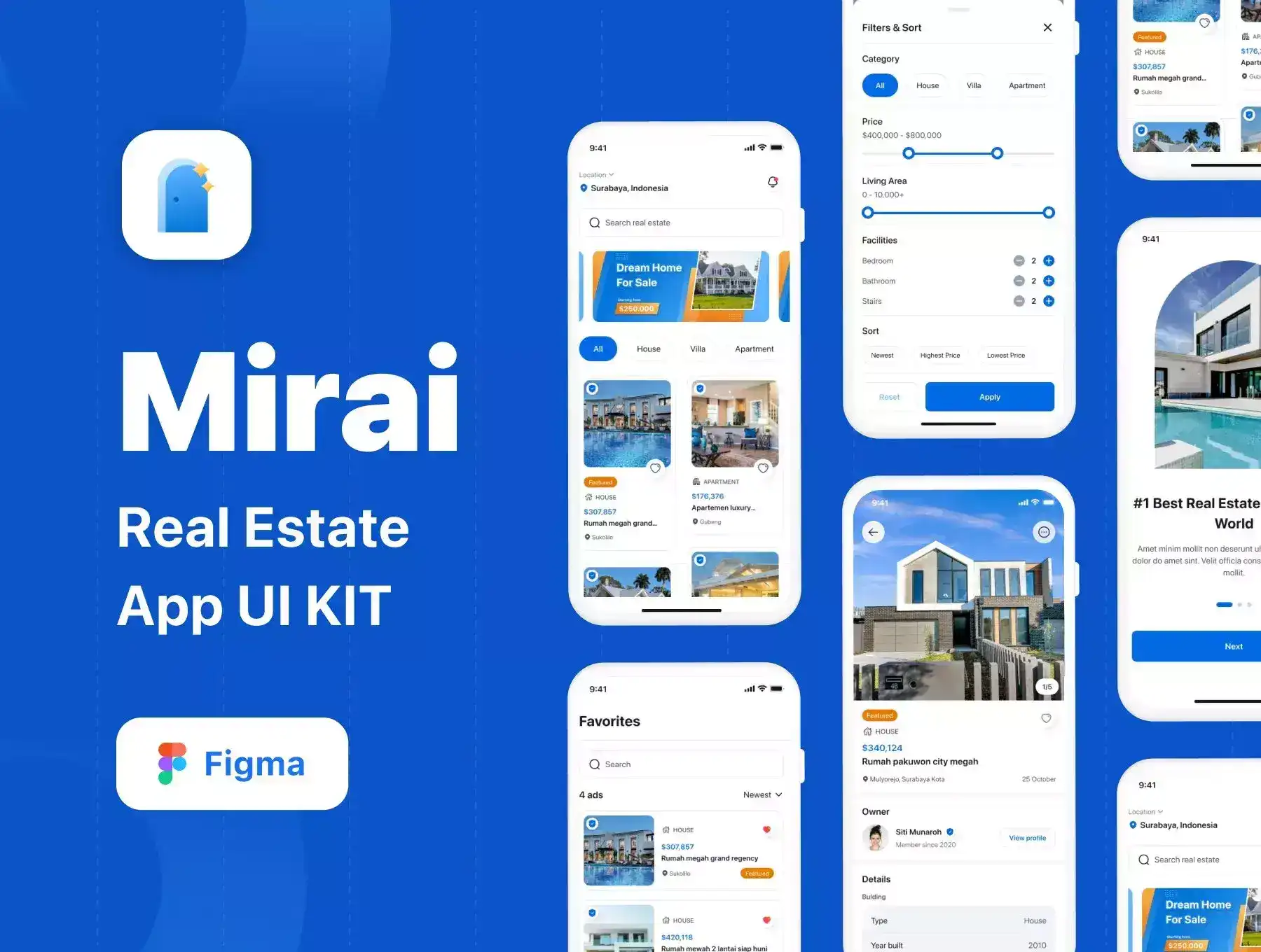 Mirai - Real Estate App UI KIT is High-Quality Real Estate Mobile App. Real Estate has 45+ robust screens for your next UI design project, personal exploration, and for your client.