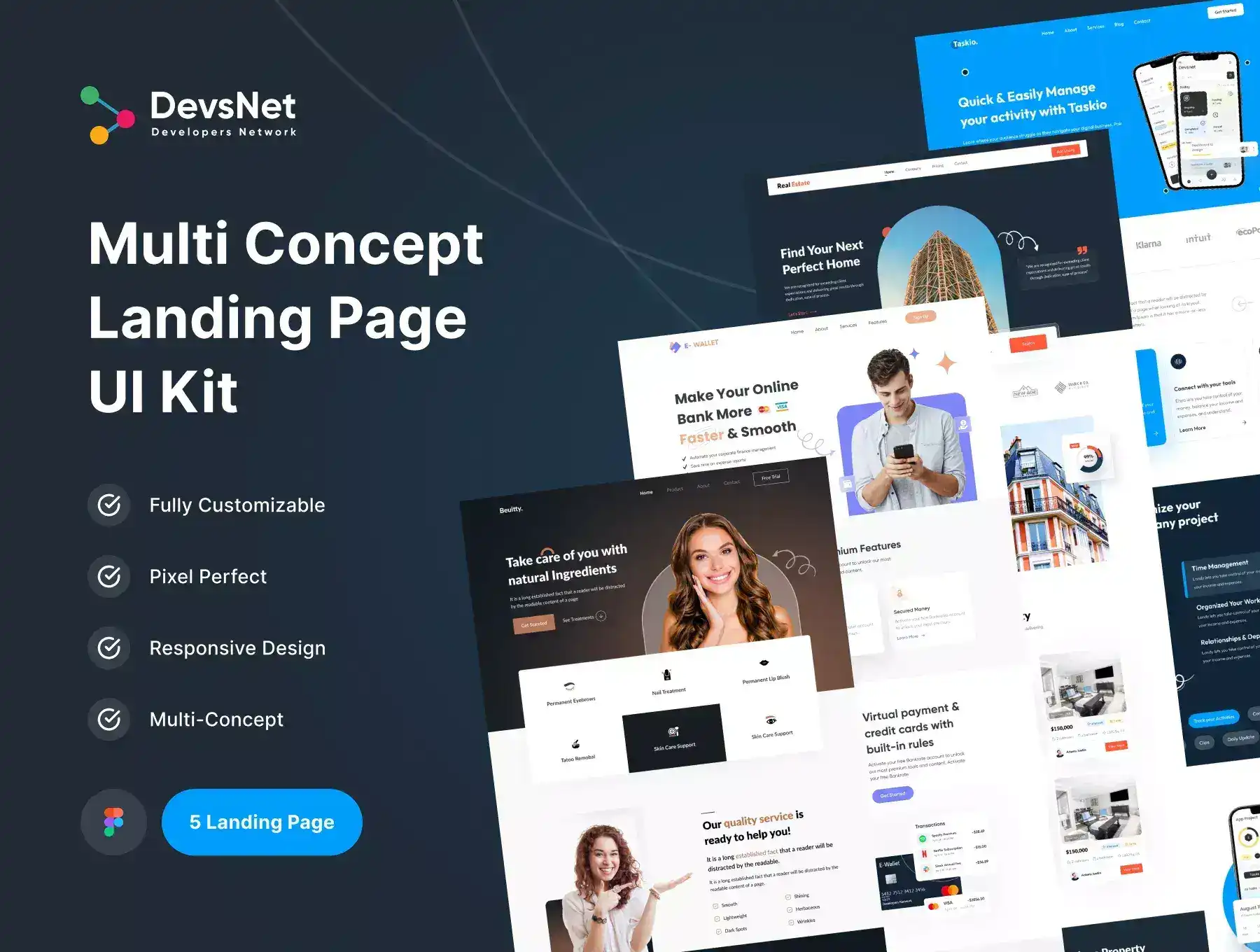 Various types of Landing pages for Crypto/NFT, Product, Fintech, Real Estate, App landing page. A perfect design that will suit your business growth. Landing pages built for Figma that will help you work faster & better than ever before.
