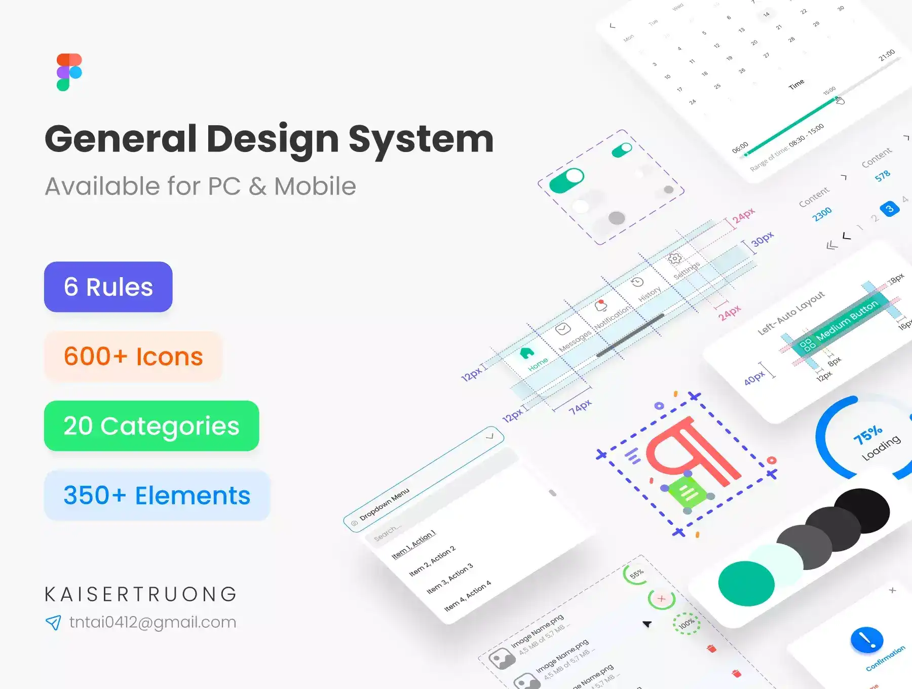 This is General Design System that helps you handle everything above. It includes Icons, Rules, UI kits, Typography, and Color Palette,... Ease to customize for individual processes or your company.