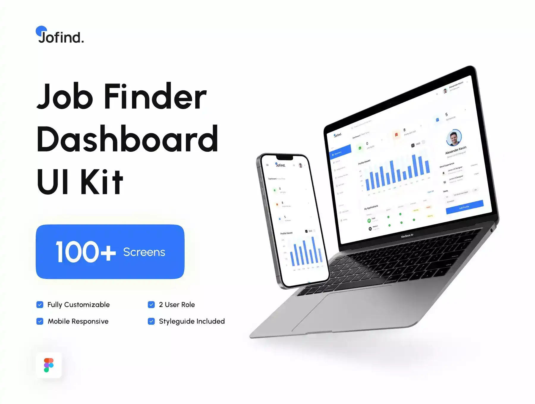 JoFind is job finder dashboard with clean, neat, modern design, and responsive design. JoFind UI Kit contains 100+ high-quality screens with responsive view.