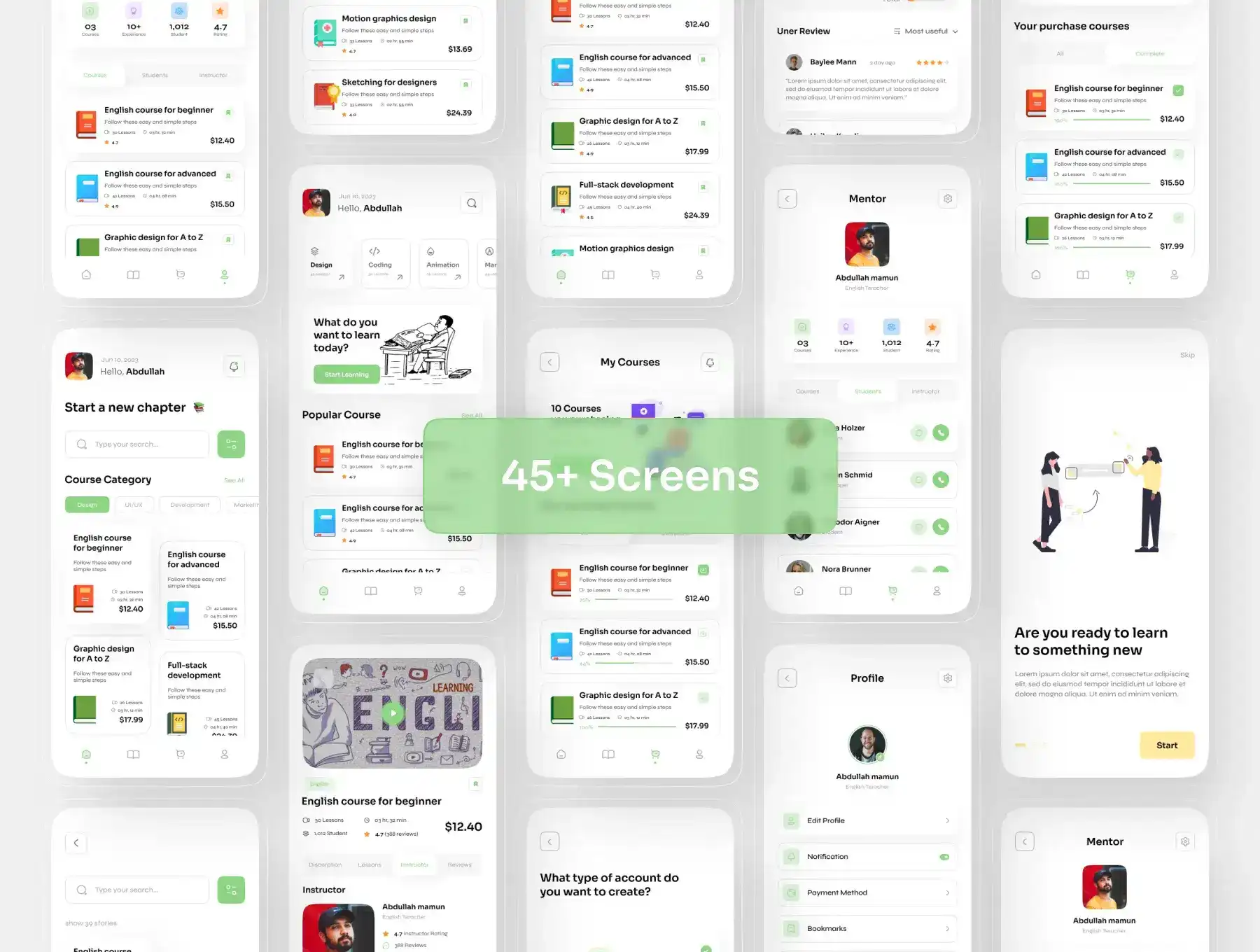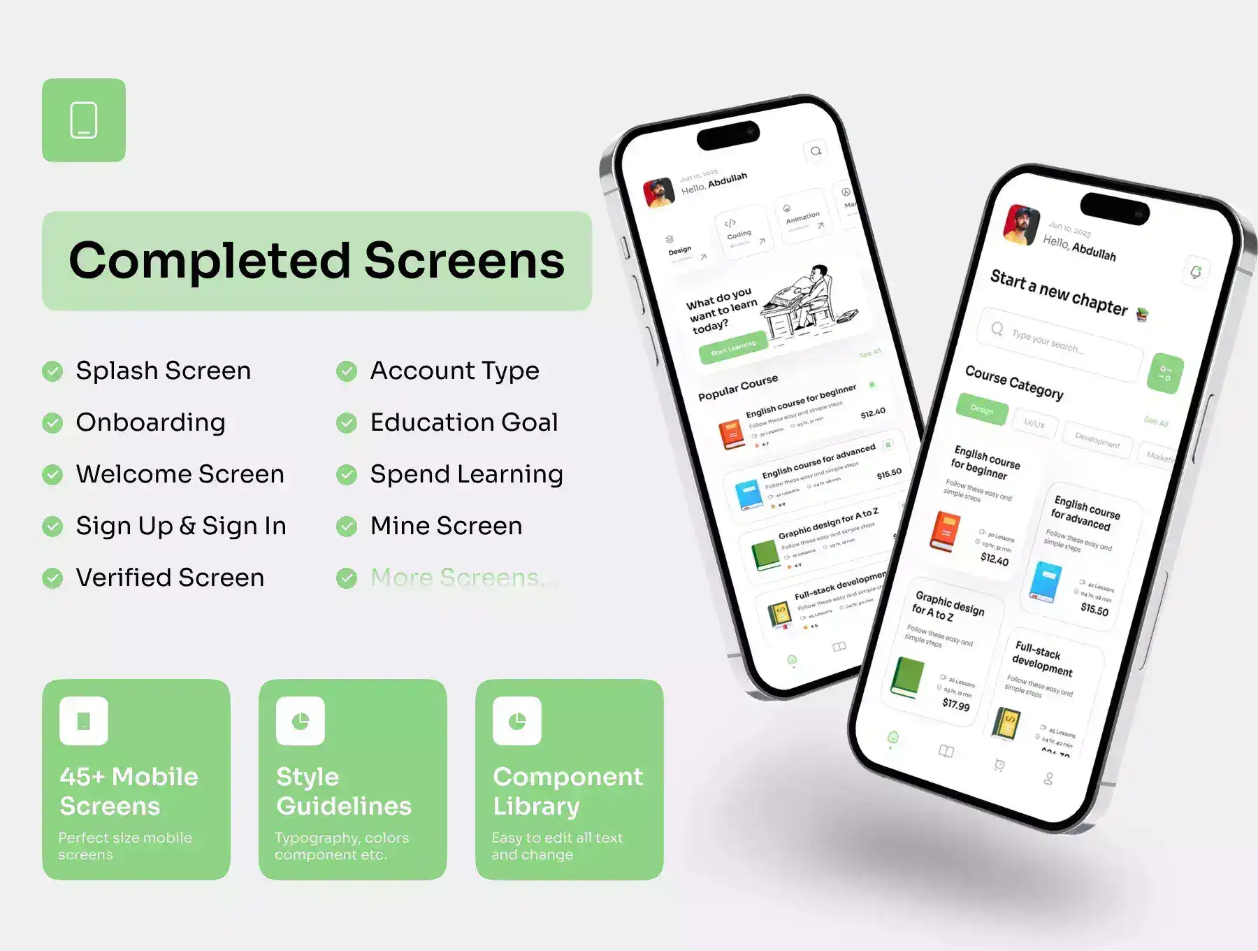 Coursa - Online Learning Mobile App UI Kit is the ideal app for distance learning courses for education purposes. It has a modern, clean and very detailed UI design for iOS and android apps. This app is designed based on the UX Research in order to provide the best experience that boosts the conversions and makes students fall in love with the learning, This app is the best fit for the one looking to launch their own online learning platform or planning to take their offline coaching business online utilizing the power of the app. This app learning design features a unique design. We designed more than 45+ beautiful unique screens for your mobile app. All symbols and objects are vector based and easily editable. We create versions for not only sketch file also Figma, Adobe XD and Sketch file, so it’s really easy to editable. You can easily change any design. It’s easy to customize and also well documented.