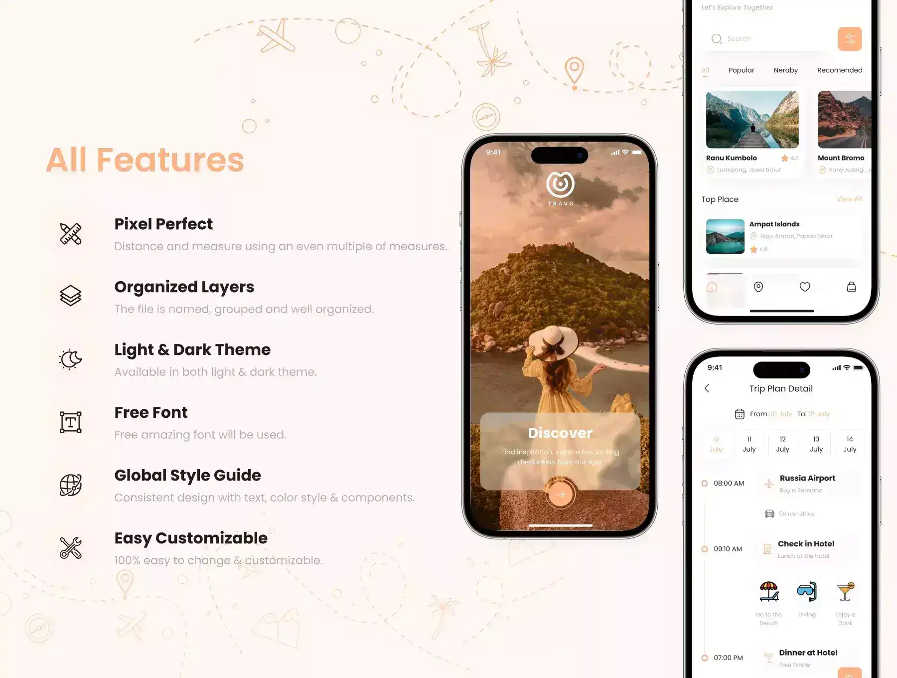 Travo is a UI Kit for travel, tour, and trip app, especially for traveler's.