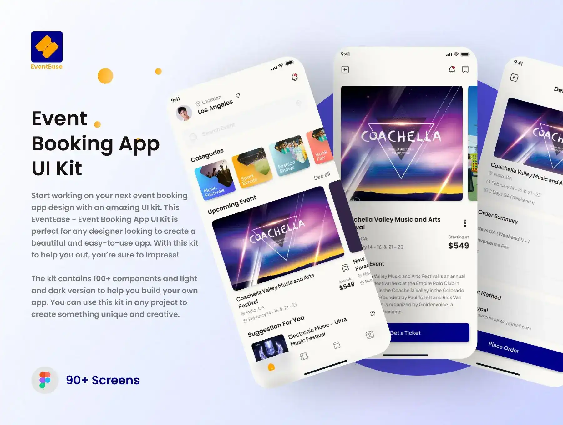 Unleash your creativity and elevate your event booking app design with EventEase - The Ultimate Event Booking App UI Kit.