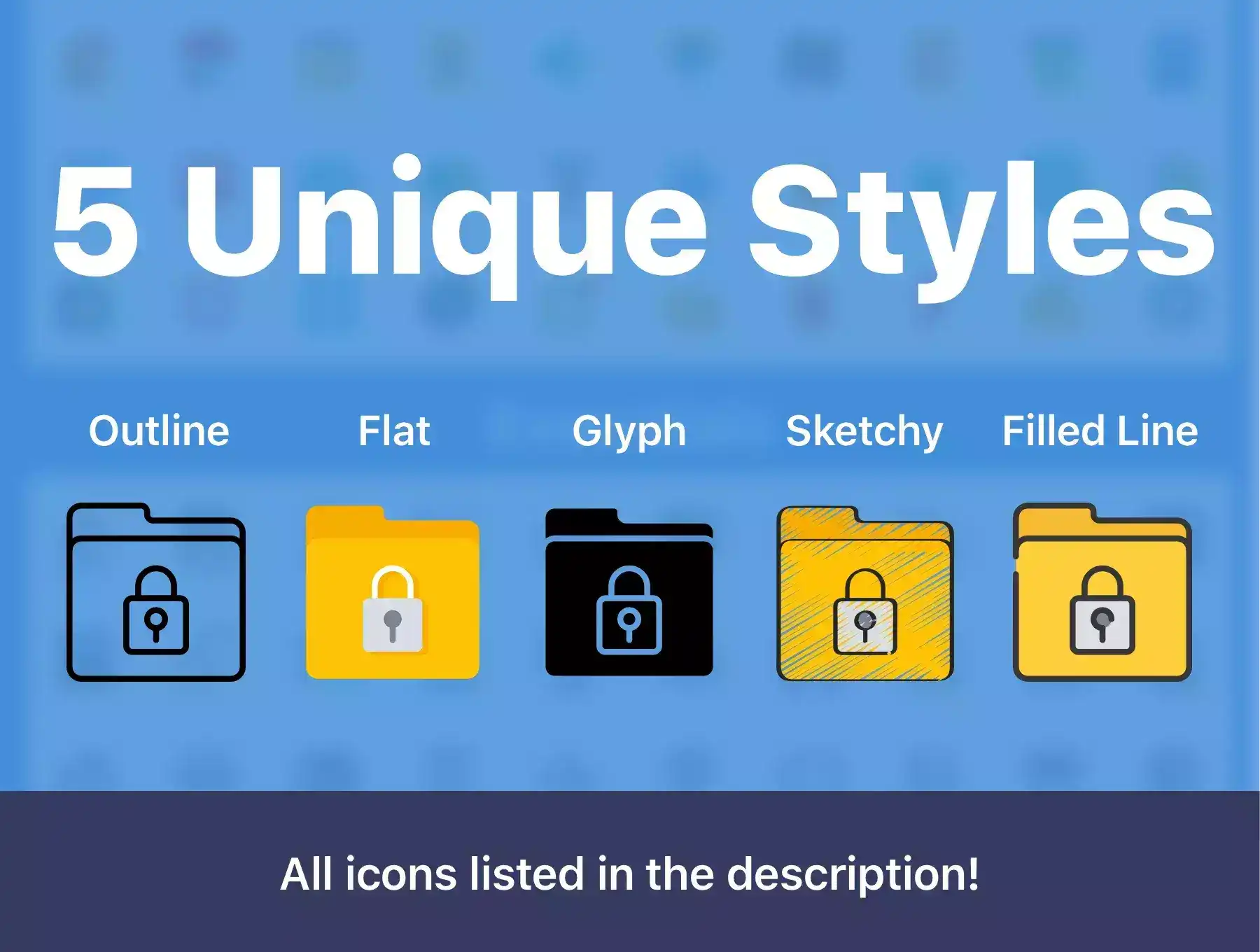 5 unique styles: Outline, Flat, Glyph, Sketchy, Filled Line