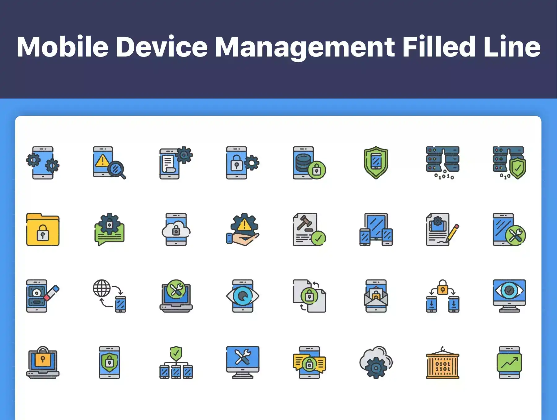 The Mobile Device Management Icon set is made up of 40 line icons created in 5 different style variations, 200 icons in total! All of the icons have been created with the same style, consistency and technical quality. Create amazing projects and meet tight deadlines with these easy to use icons!