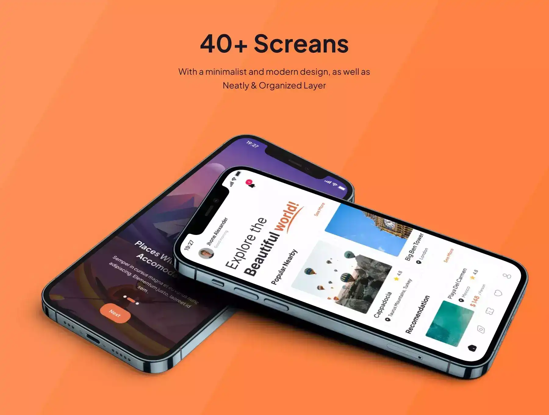 Travelory is a High Quality UI Kit of an Travel Mobile App UI Kit. Travelory came with a modern minimalistic design. The kit has been equipped with grouping and naming for each group so that you can edit it more easily.