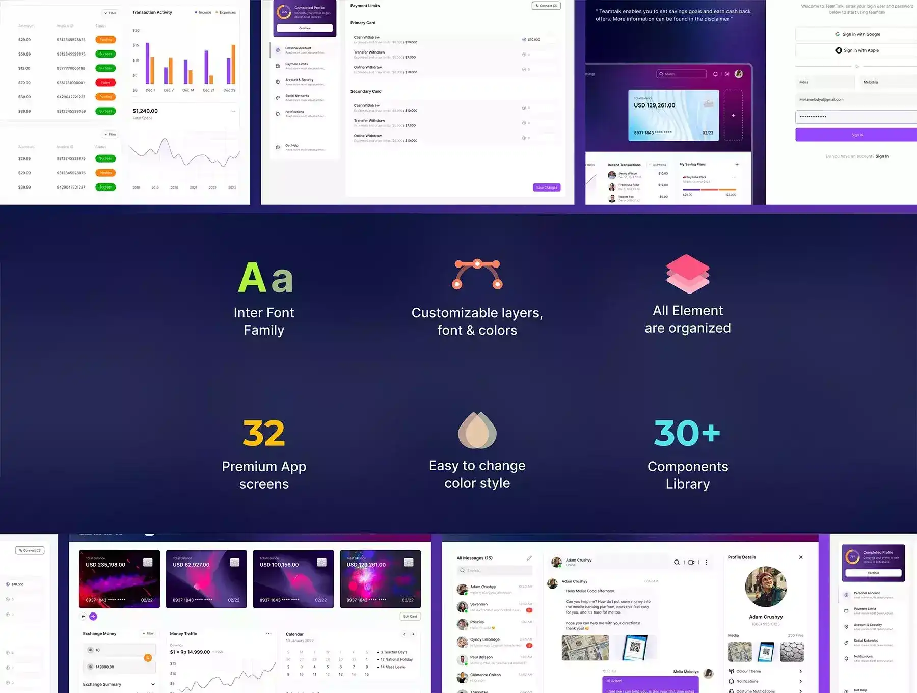 This is our new product called Teamtalk. These are 32 Screen Design. Dashboard Finance is a financial management tool that can help you manage your monthly financial expenses. Concept is easy to edit, customize, and resize, because of vector shapes, and very well organized layers.