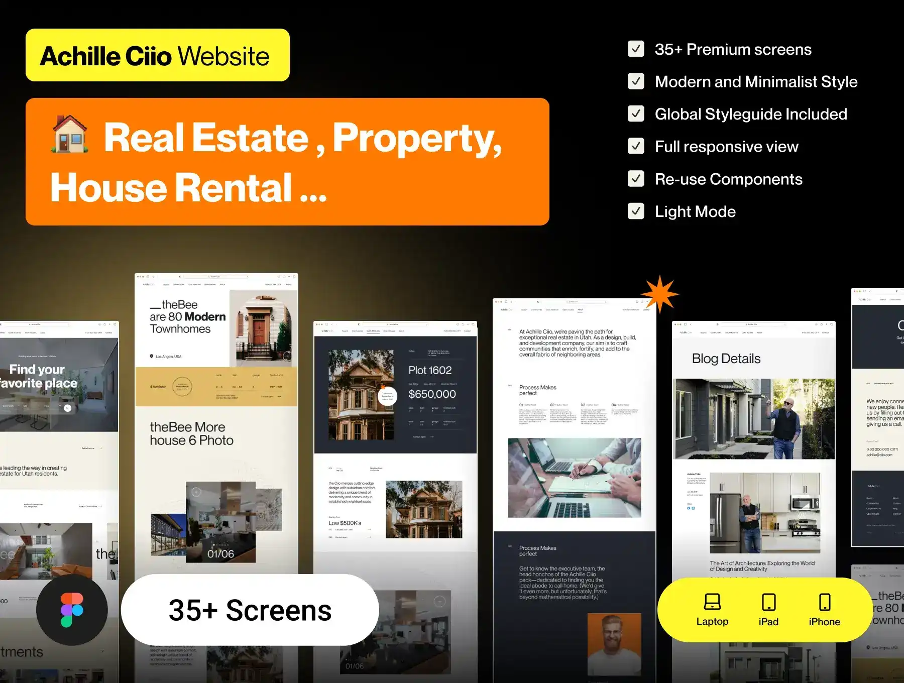 Achille Ciio is a Real Estate App UI KIT Design . Find your favorite place Transform your real estate vision to new heights with Homely - the expertly crafted and versatile UI kit featuring over 35 premium screens seamlessly integrated with Figma.