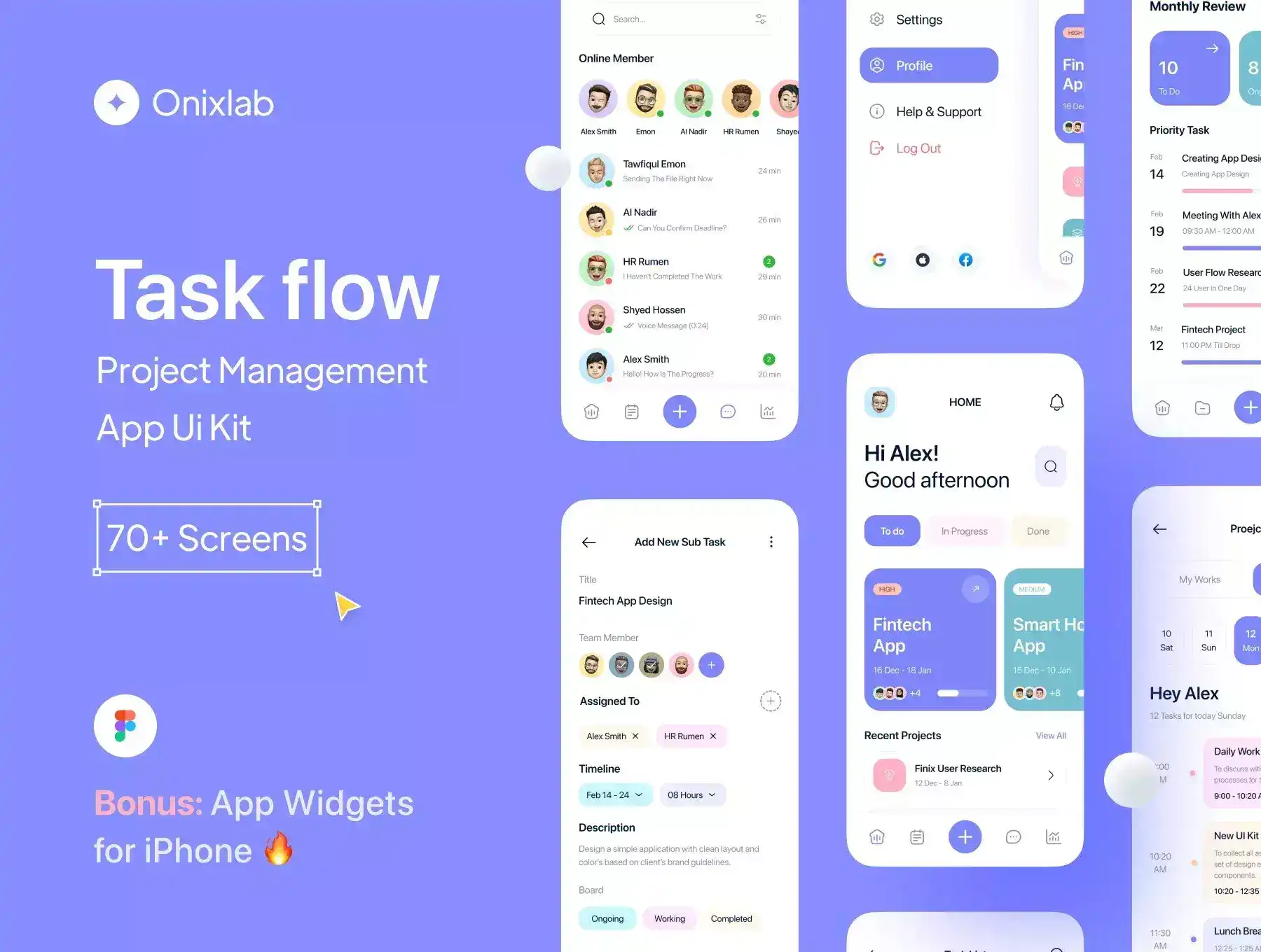 Featuring over 70 screens, global design system, and app widgets, Taskflow Ui kit makes app design effortless.