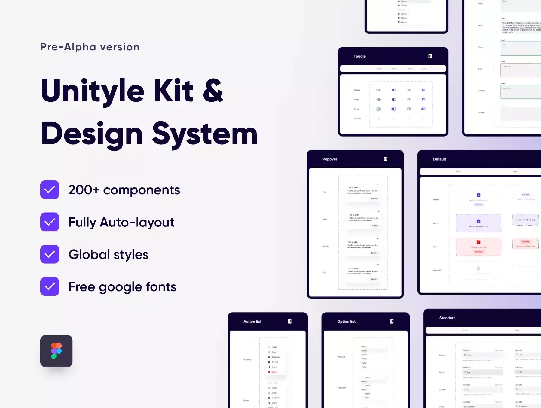 The pre-Alpha version is suitable for creating a stable base for your design system as well as for using it in your projects right after purchase. We look forward to your feedback, ideas, and suggestions for future versions.