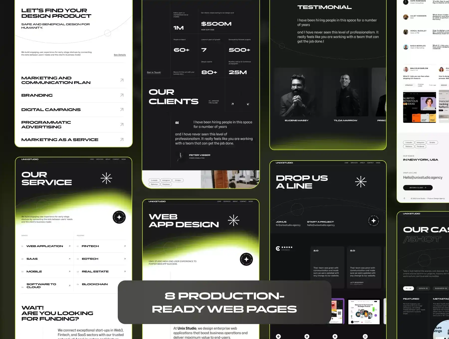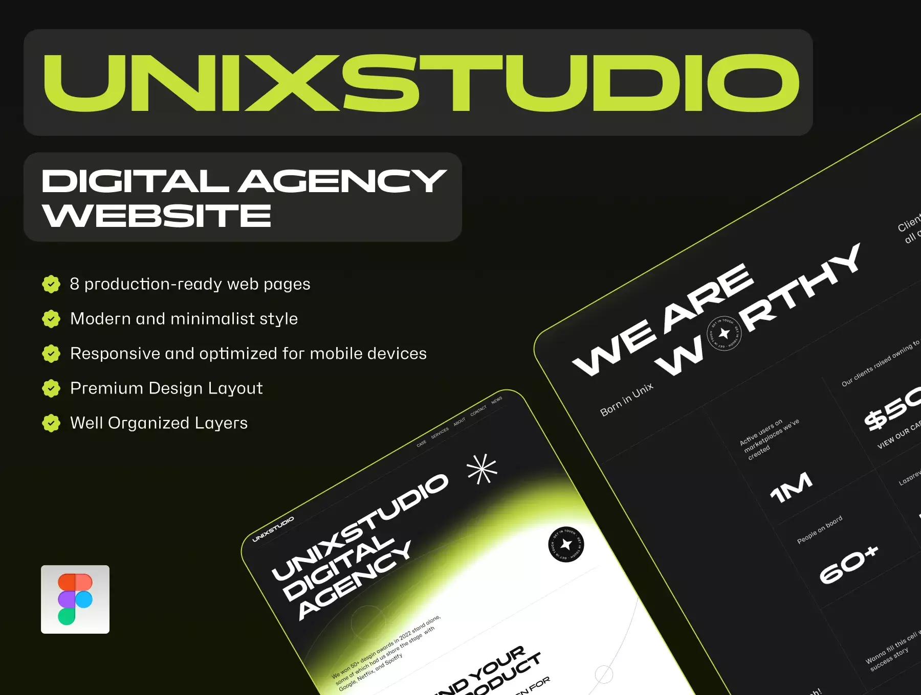 UNIX STDUIO – Digital Agency Template. UNIX STUDIO is a modern and clean template designed for Portfolio, Creative, Photography, Landing, Agency or Multipurpose. To edit this template with FIGMA is very easy! You can change colors, texts or replace the images in a few minutes. Desktop Tablet and Mobile version are included!