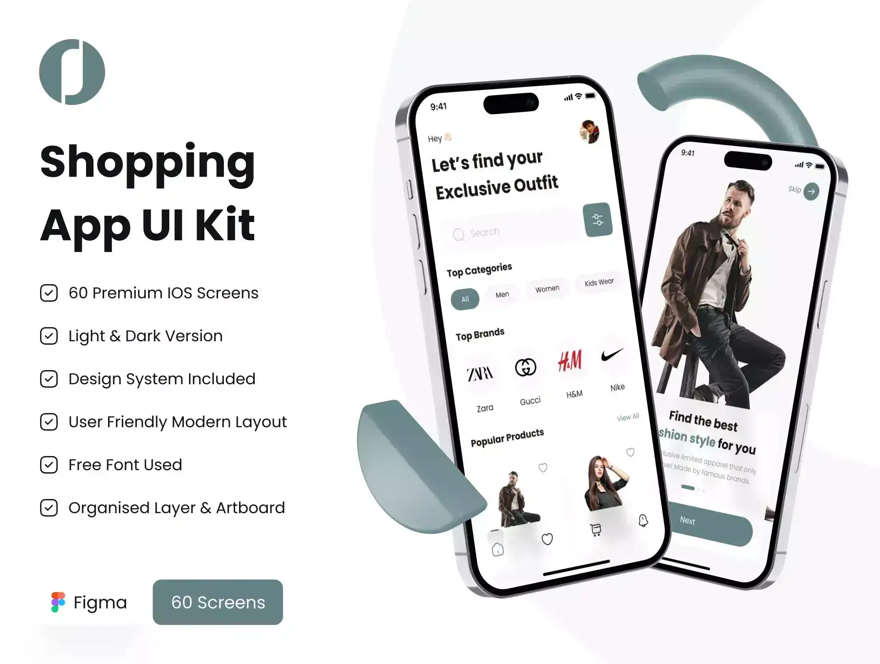 Here I will presenting Shopping App UI Kit consisting of 60 pixel-perfect screens and easy to use in Figma.