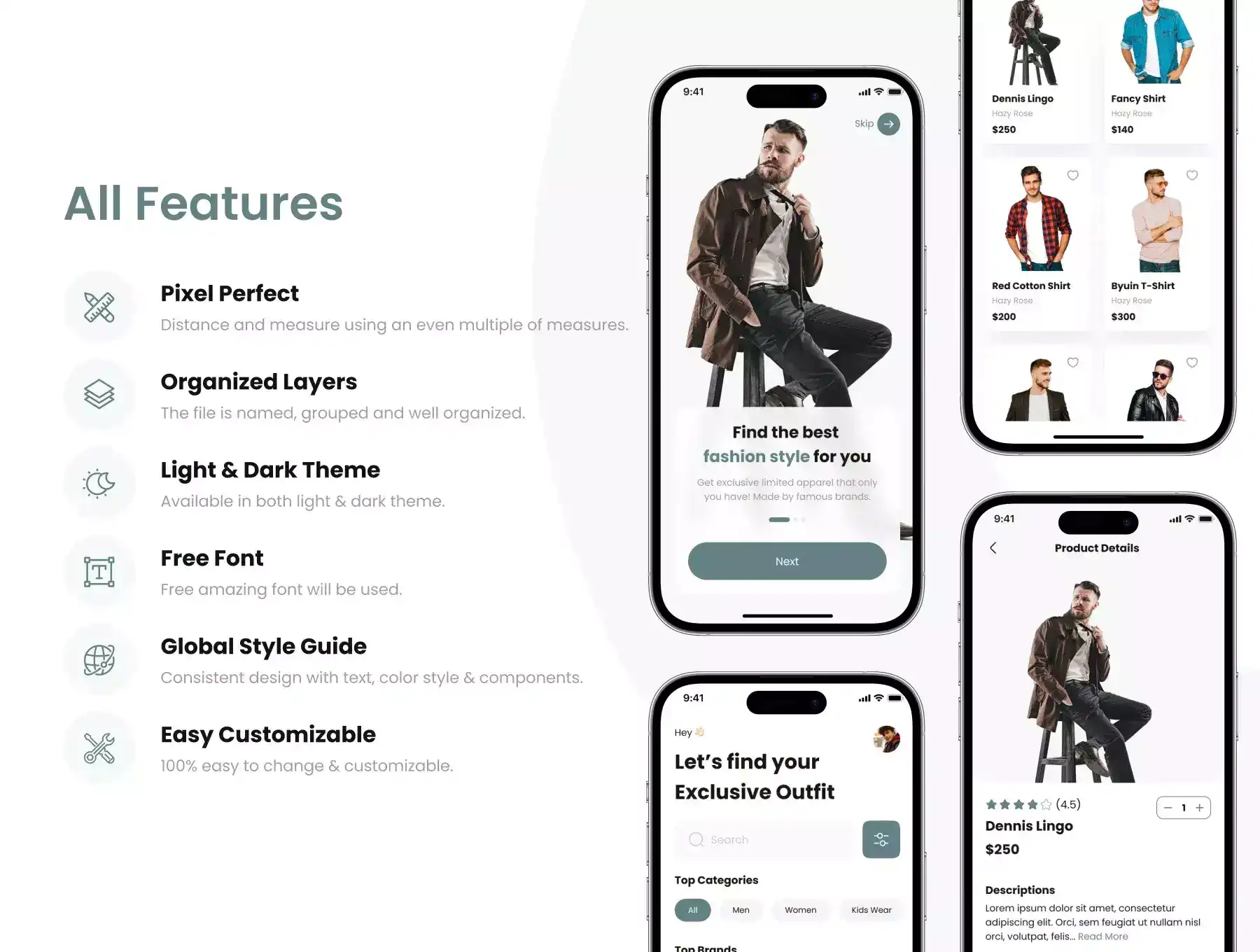 The kit is easy to fully customize to your liking and it leverages all Figma features, including global color, font styles, dynamic components & variants. Available in Light & Dark Theme.