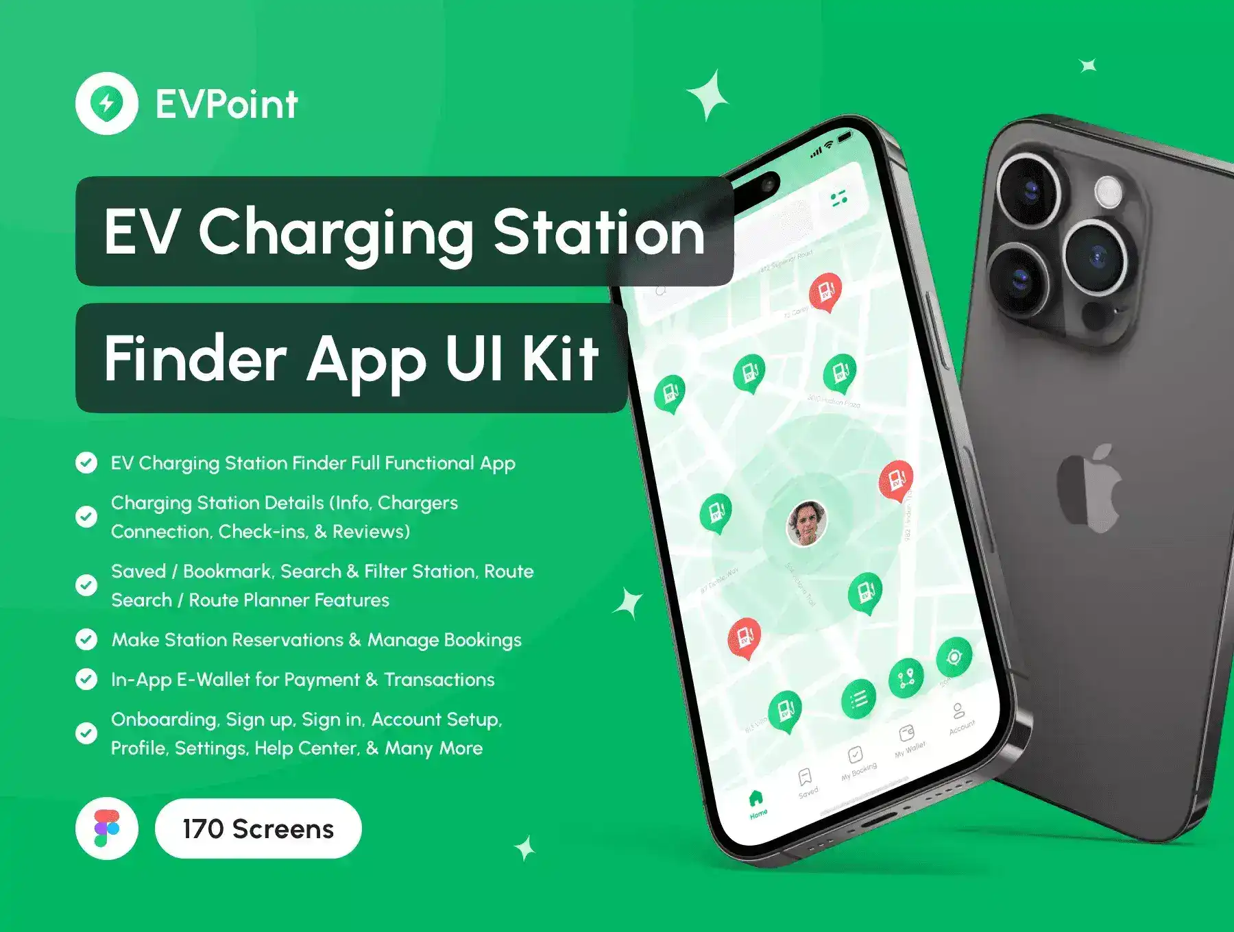 EVPoint support for iOS/Android (design system included) and 170 screens which is 100% editable & customizable. Designs are available in Figma. In addition, the design is also equipped with a version of Light & Dark Theme.