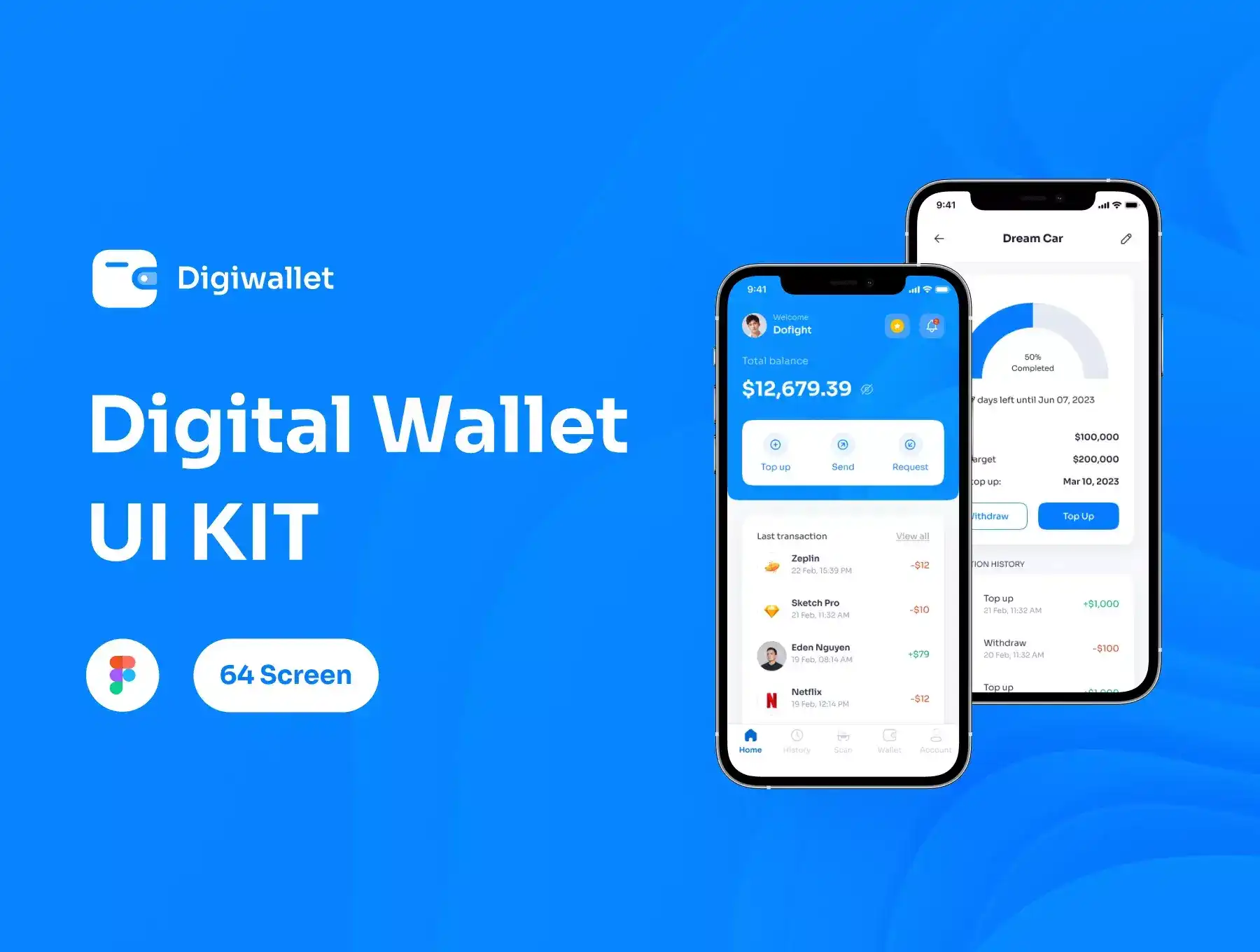 Digiwallet - is a digital wallet mobile app design that came with a modern minimalistic design and contains 60+ high-quality screens. This modern design template is easy to customize with global color and text style.