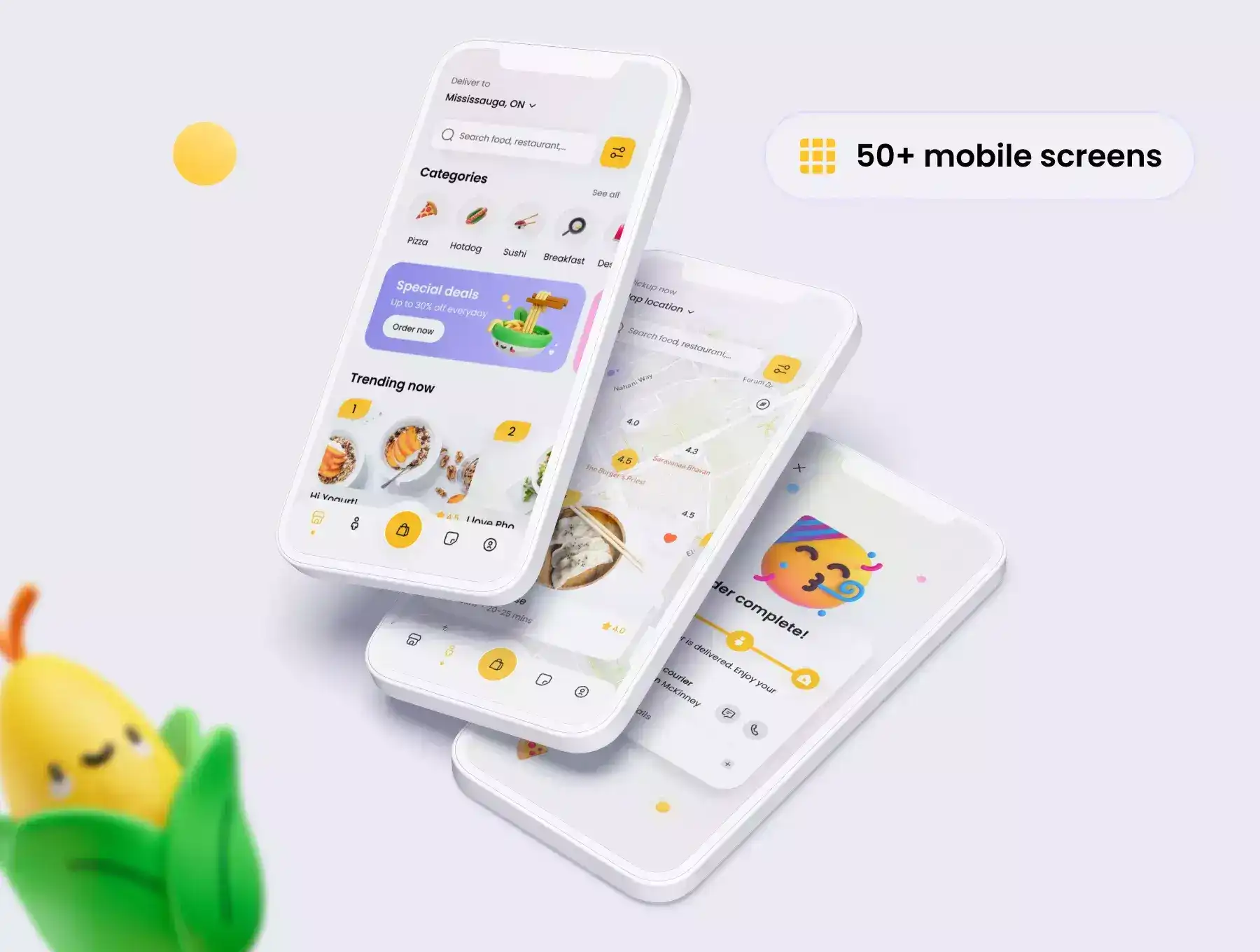✔All mobile screens have a clean & minimal design including Onboarding screens, Sign in/up, Delivery and pickup options, menu browser, check-out process, payment, delivery status, profile and much more.