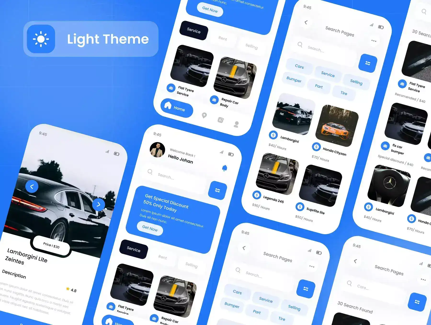 A highly detailed user interface template will help you design for any kind app Car Marketplace, automotive, Auto Shop, and related projects, also the screens is usable for other product design as well.