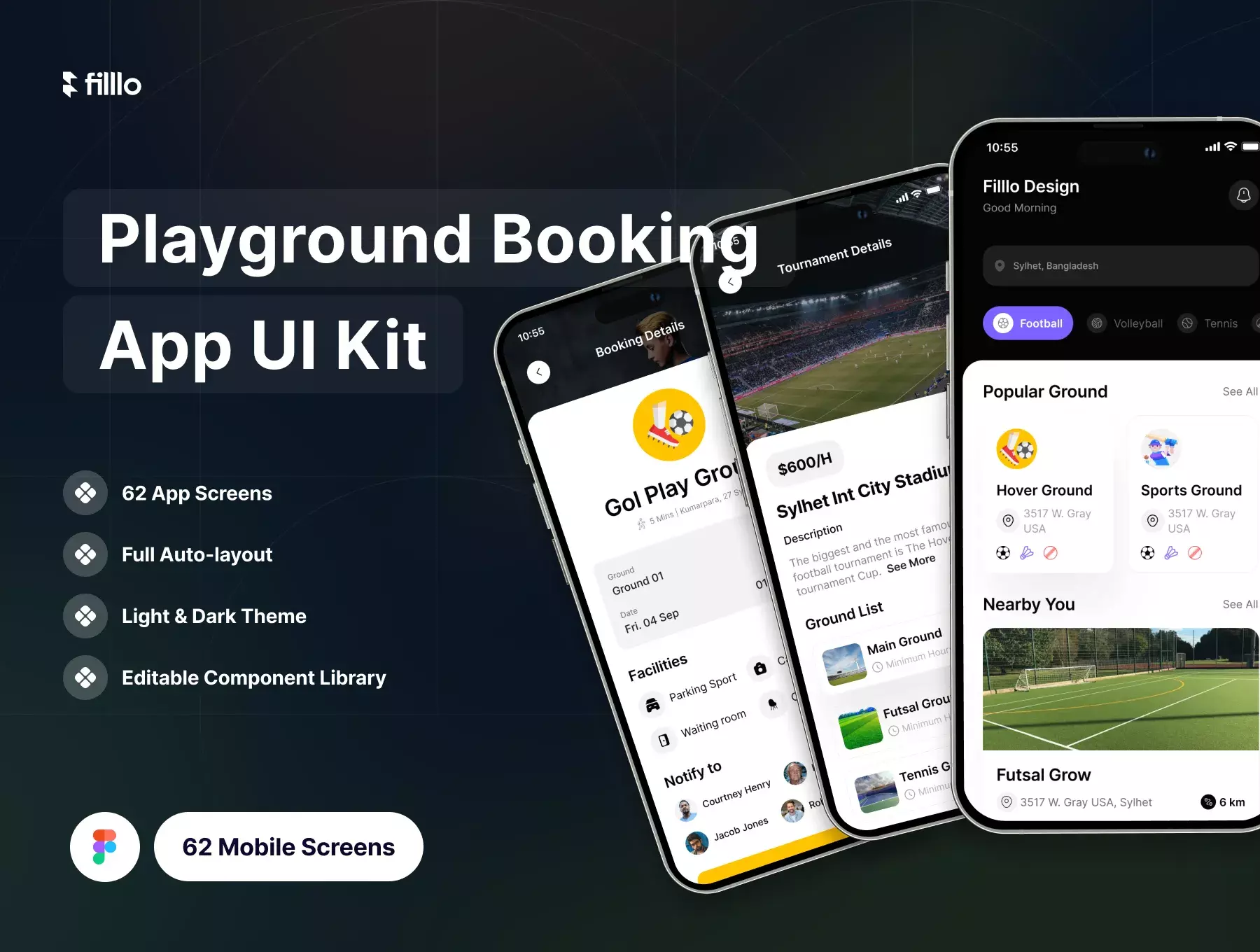 The Filllo Playground Booking App UI Kit is the perfect digital product for designers, front-end developers, startup owners, and agencies. This kit comes equipped with 62 iOS App screens, both dark and light versions, and is 100% editable and customizable.