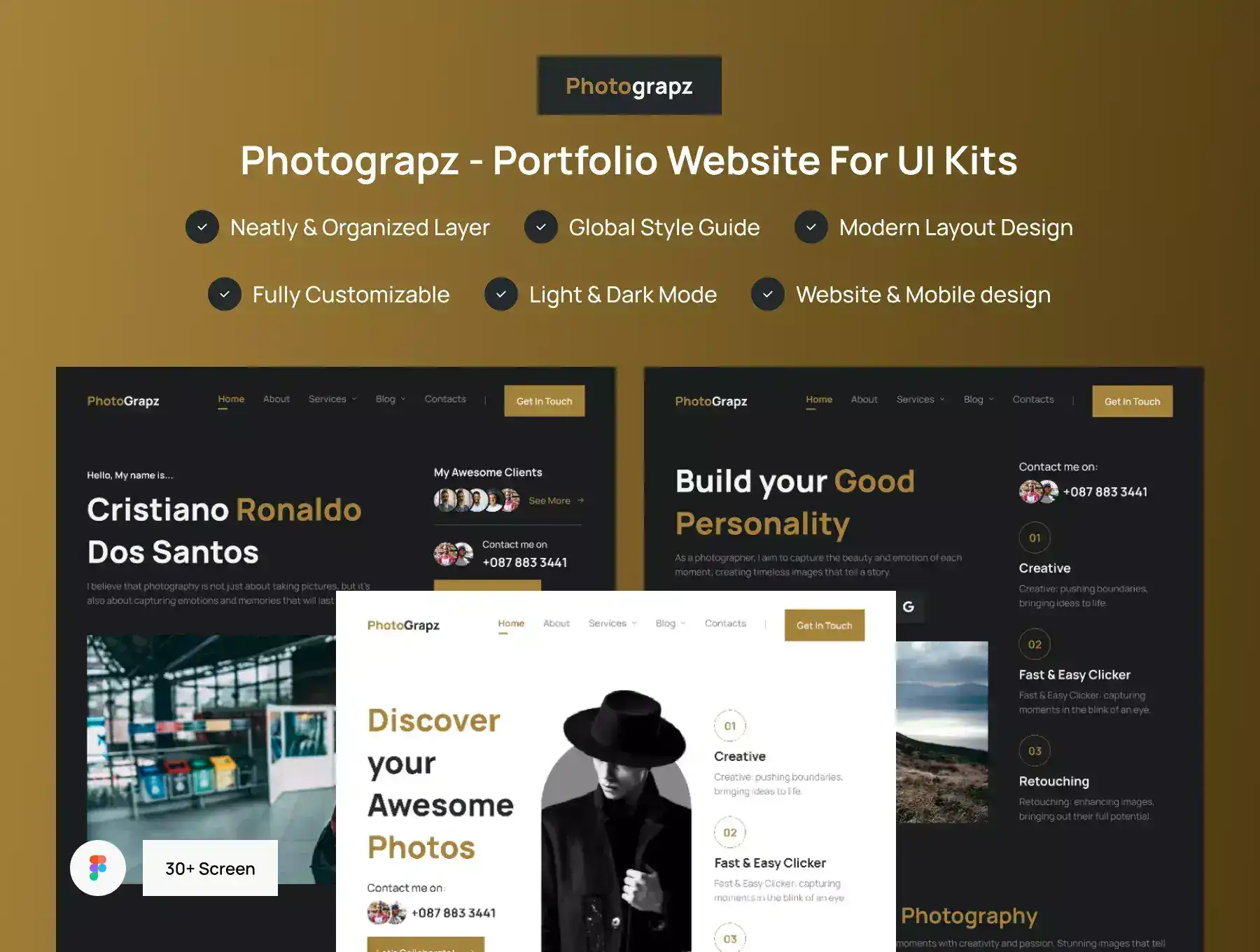 Siena comes with more than 30+ beautifully designed screens in total, available in dark and light modes and available on the website, mobile, and IPad responsive. PhotoGrapz is also highly customizable, well-layered, and organized.