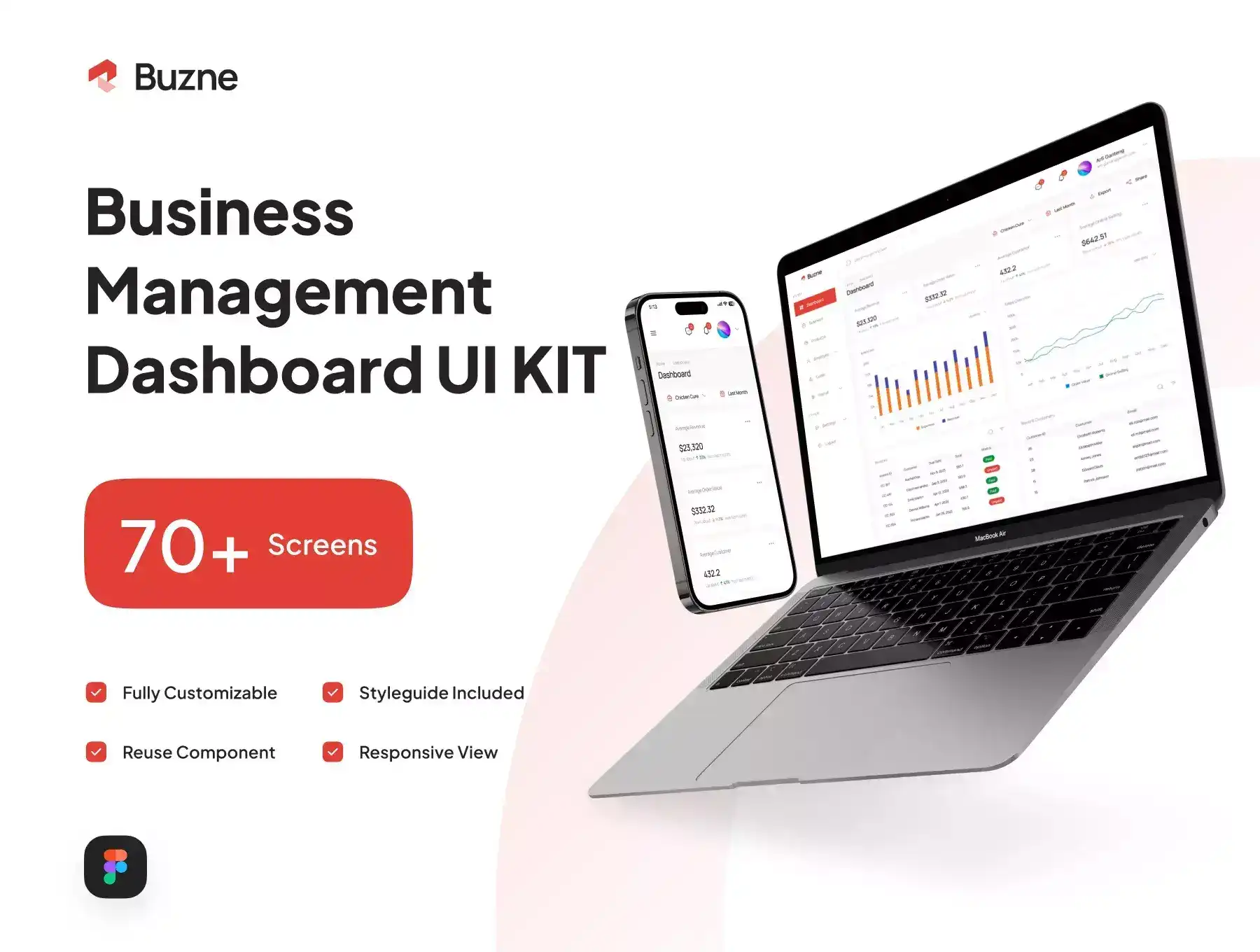 Buzne is Business Management Dashboard UI Kit with clean, neat and modern design. Buzne UI Kit contains 70+ high-quality screens with dashboard and responsive view. Available in light mode and easy use in Figma.