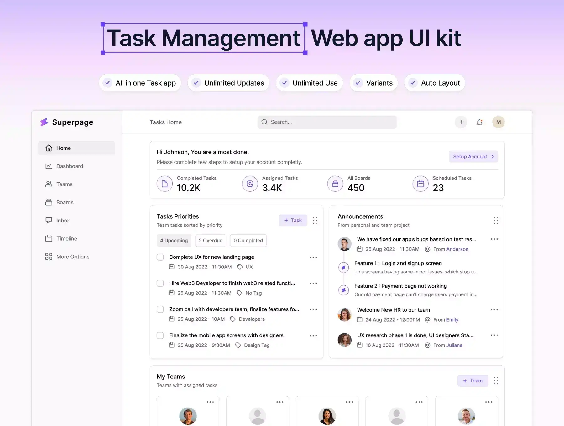 We designed Task management Web and desktop app UI kit to help you kickstart your project, We research and analysis lot of the Task Management web apps before designing this kit so this will surely save your time and effort.