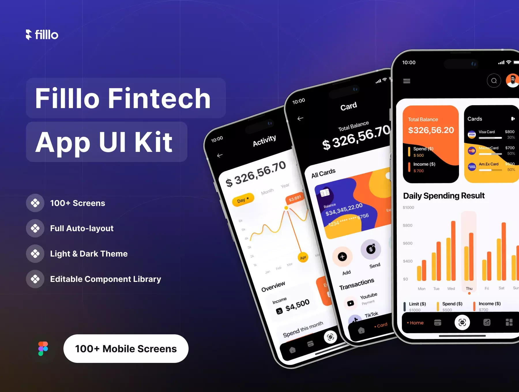 Introducing Filllo Fintech App UI Kit - the ultimate solution for your finance app design needs! This kit includes 100 fully customizable app screens, available in both dark and light versions to best suit your brand. Our trendy design is perfect for modern finance apps, ensuring a well-organized and easy-to-use interface. Choose Filllo Fintech App UI Kit and take your app to the next level!