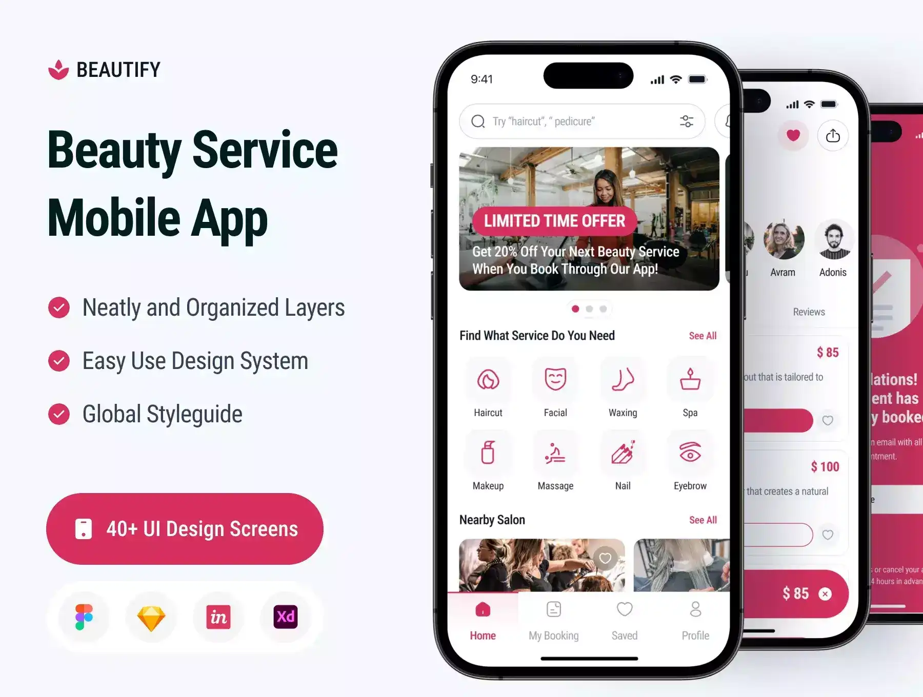 Beautify - Beautify Service Mobile App UI KIT. We designed a highly detailed apps screen and certainly clean, so you can use it in your project