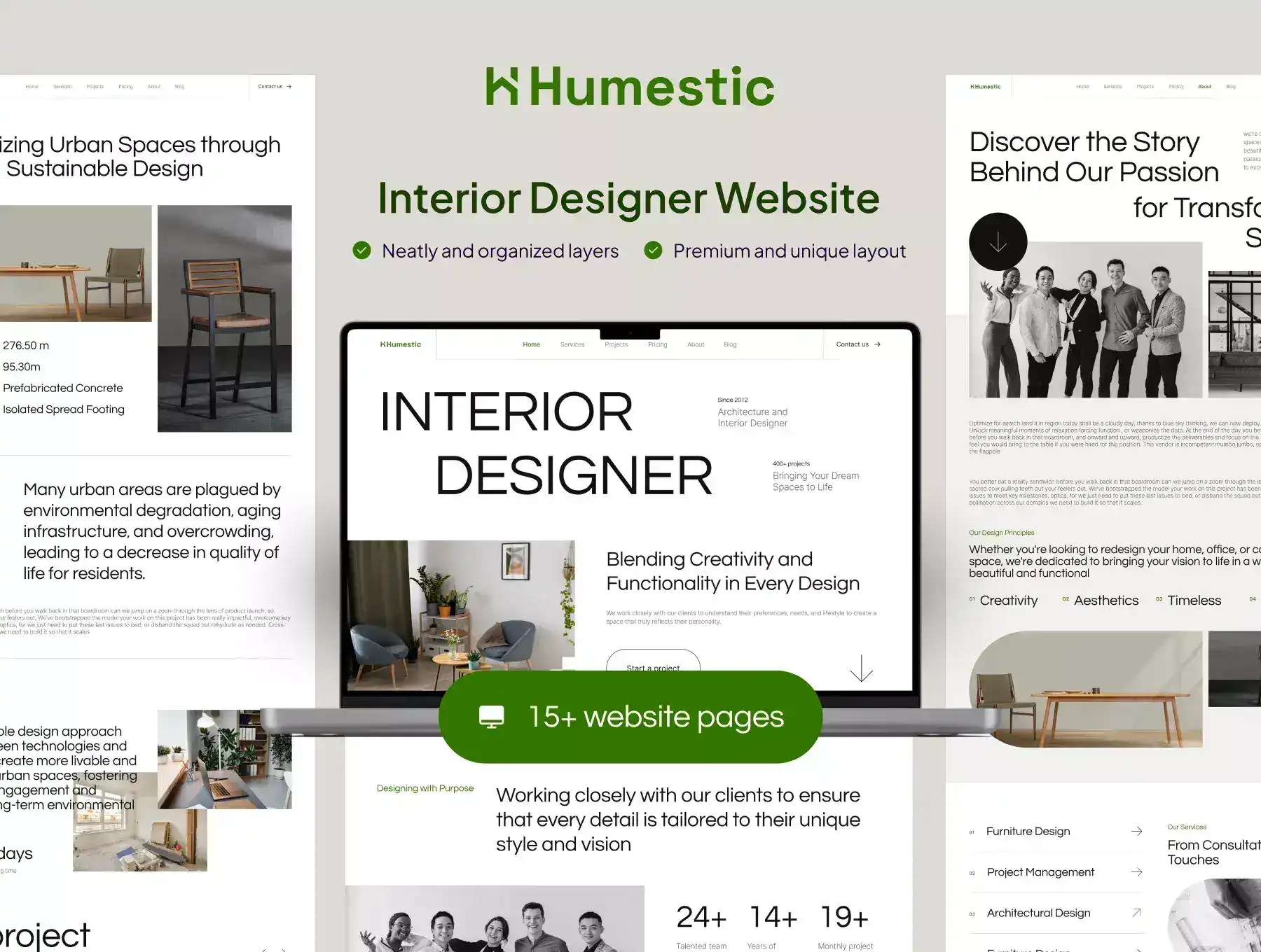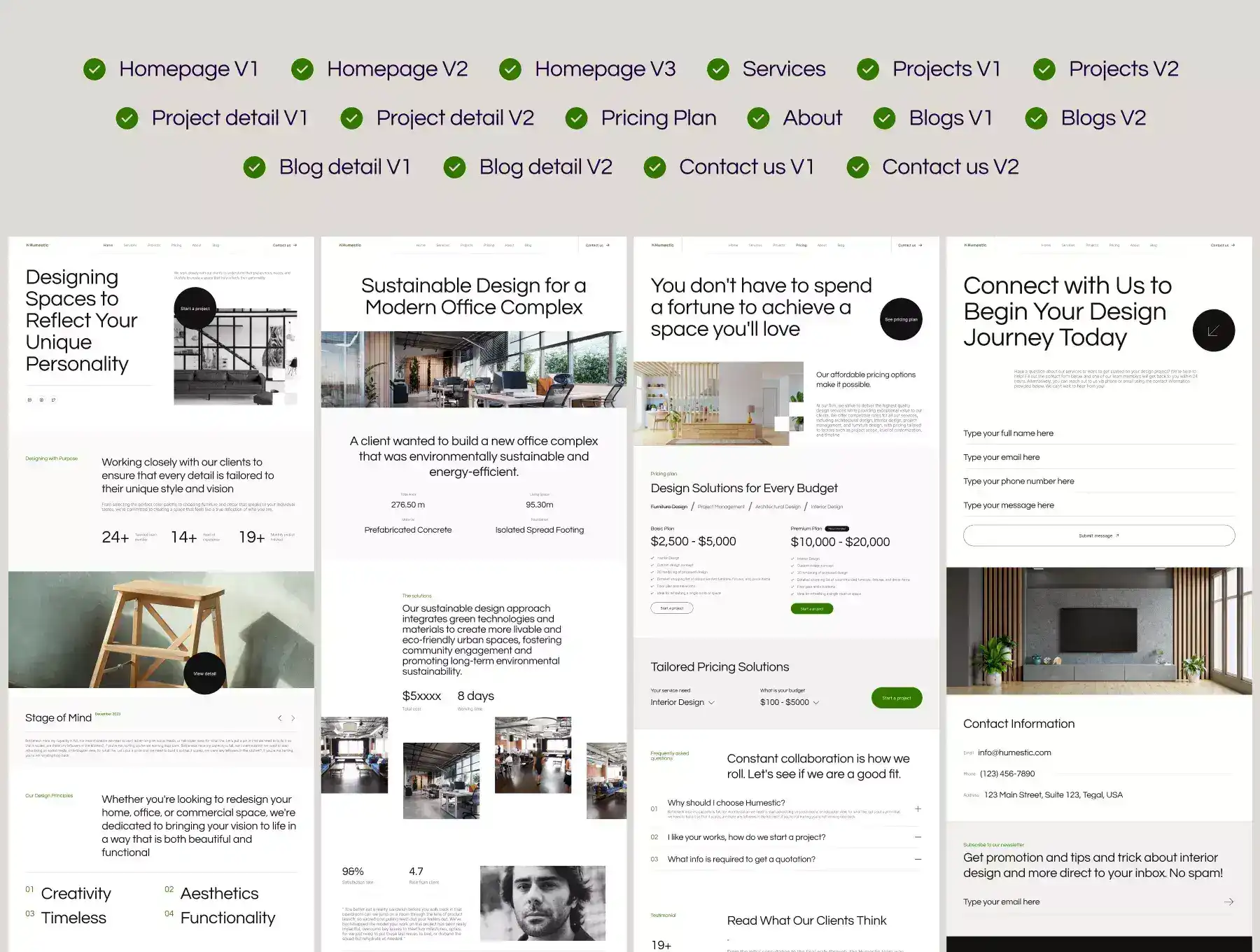 Humestic - Interior Designer Website. Perfect, fresh, and stylish UI Kit for building beautiful Landing Pages and Mobile Responsive.