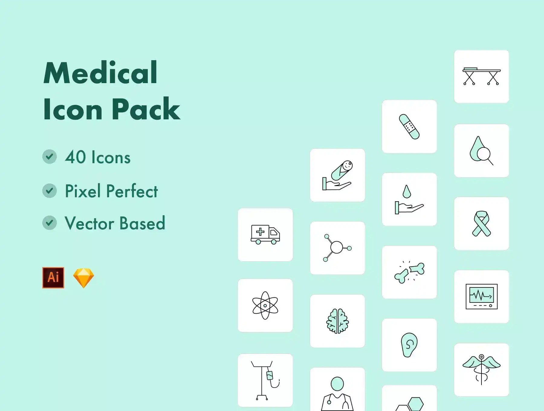 Hello designers! Here is an amazing pack of 40 medical icons crafted to make your designs shine. Each icon shares a consistent visual language allowing you to implement on a website, Apps etc..