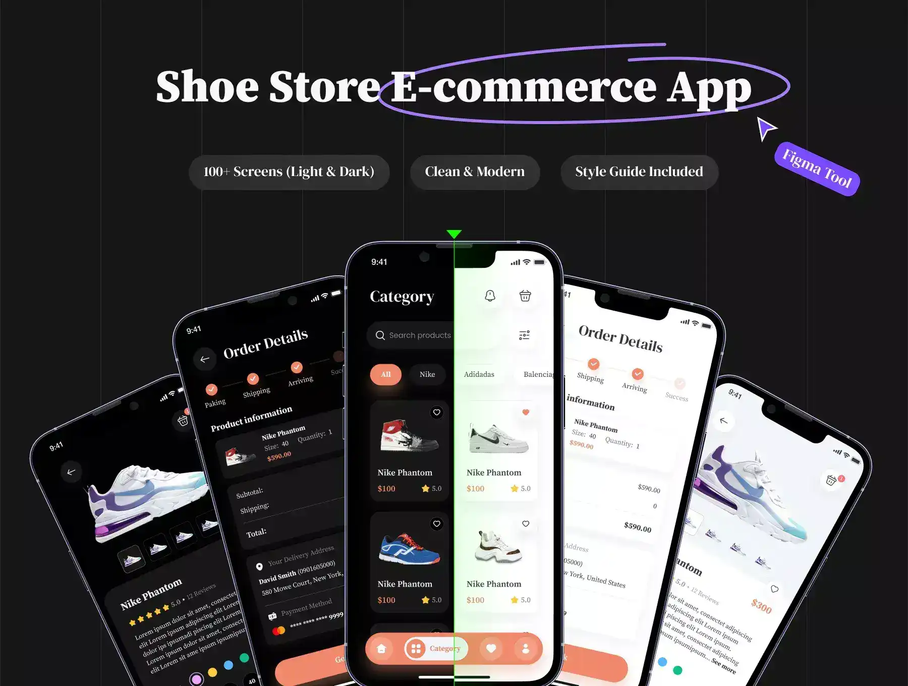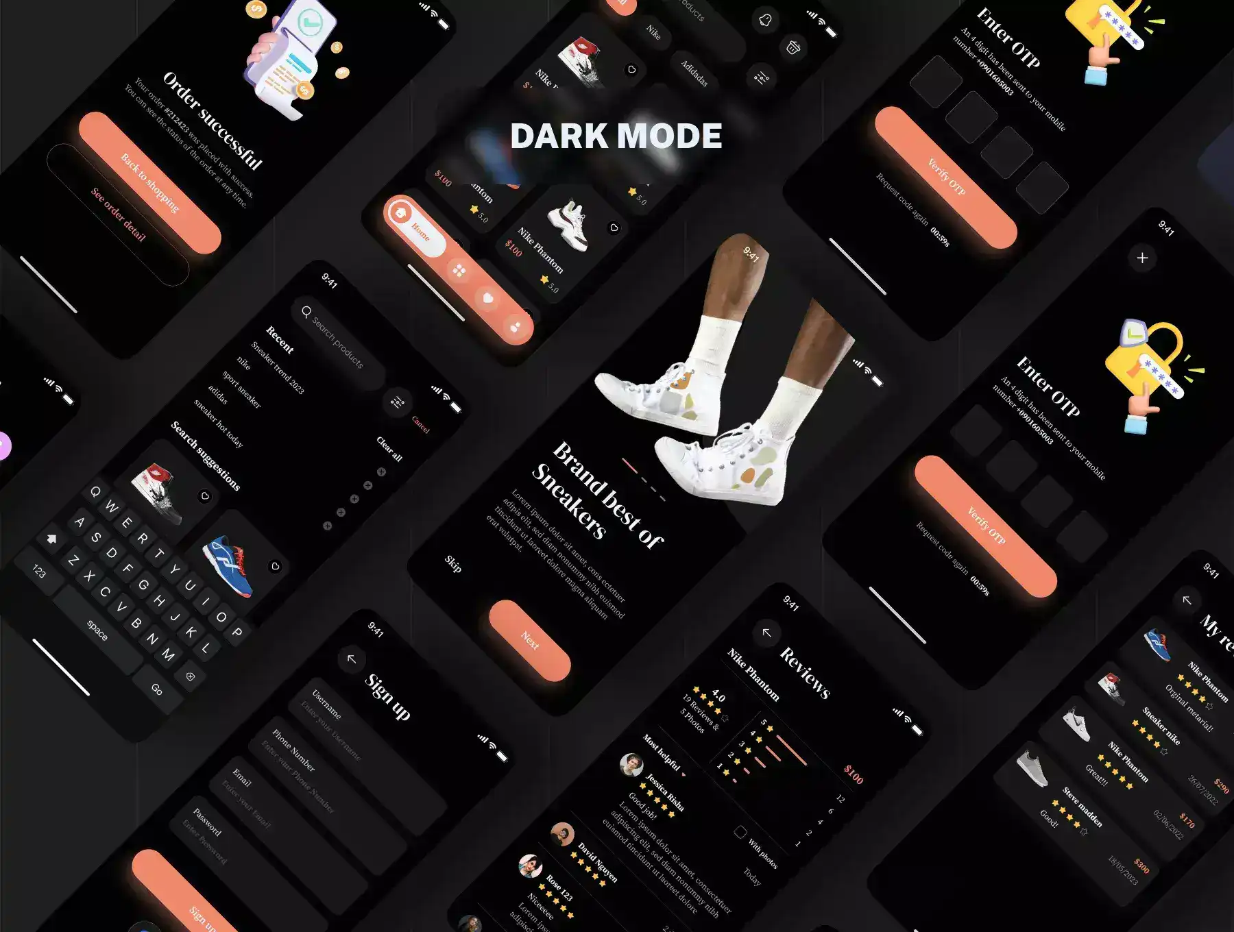 Shoe Store design UI Kits for eCommerce with 100+ screens (Light & Dark version)