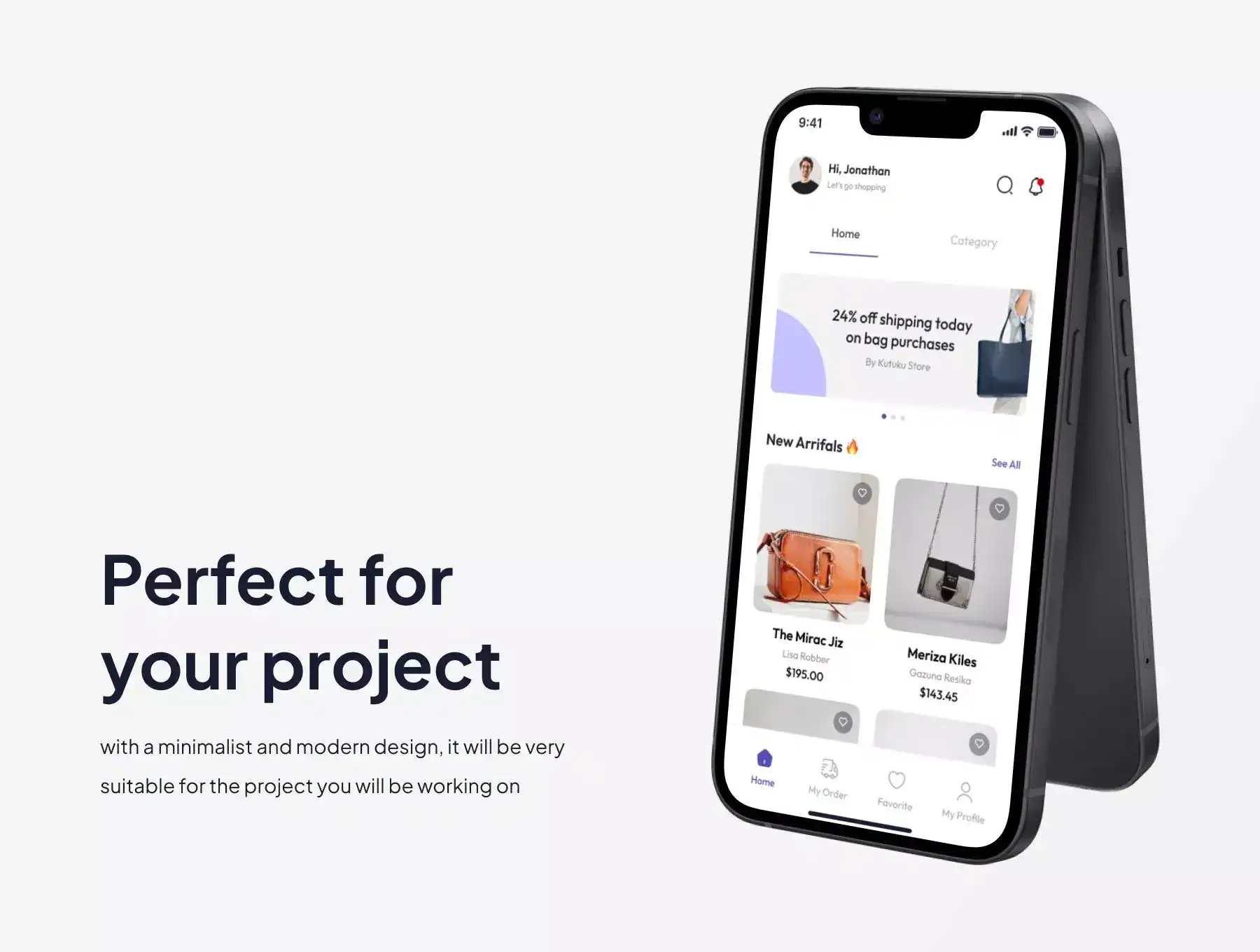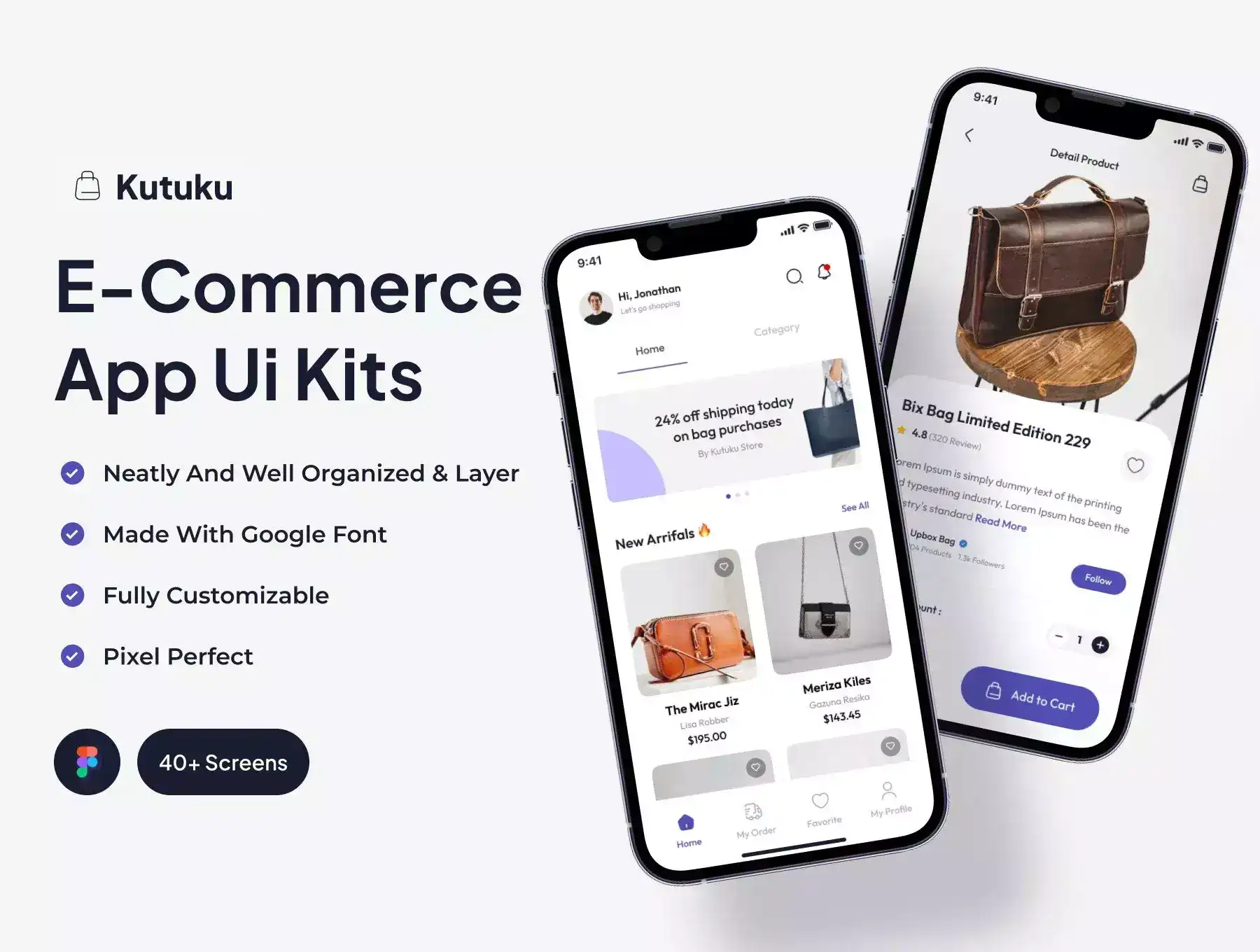 Kutuku Minimaslist design UI Kits for E-Commerce Apps with 40+ screens.