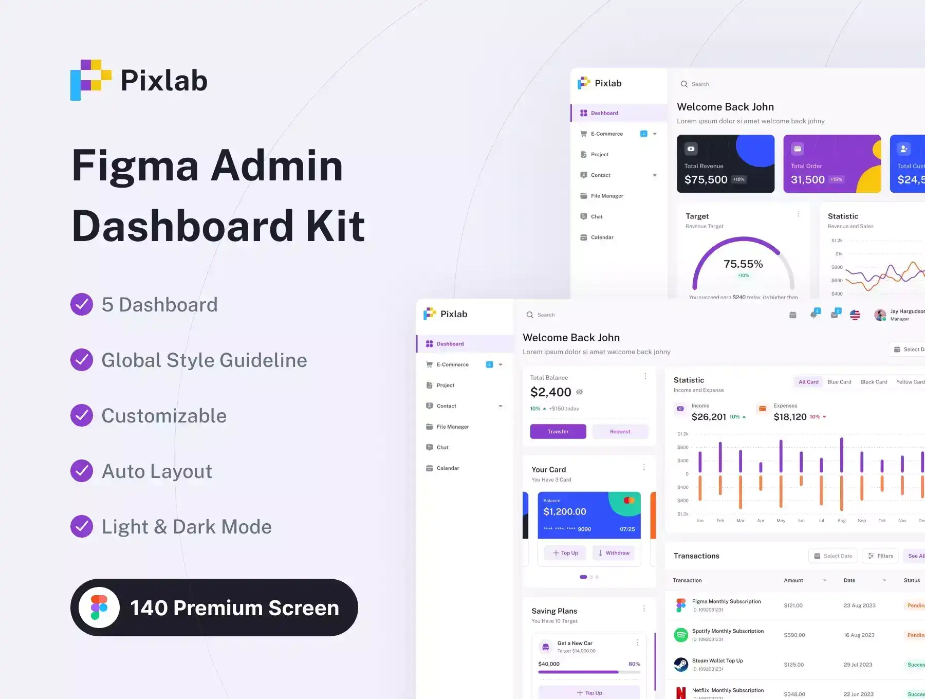 Pixlab is a clean and modern dashboard UI kit that fits any purpose