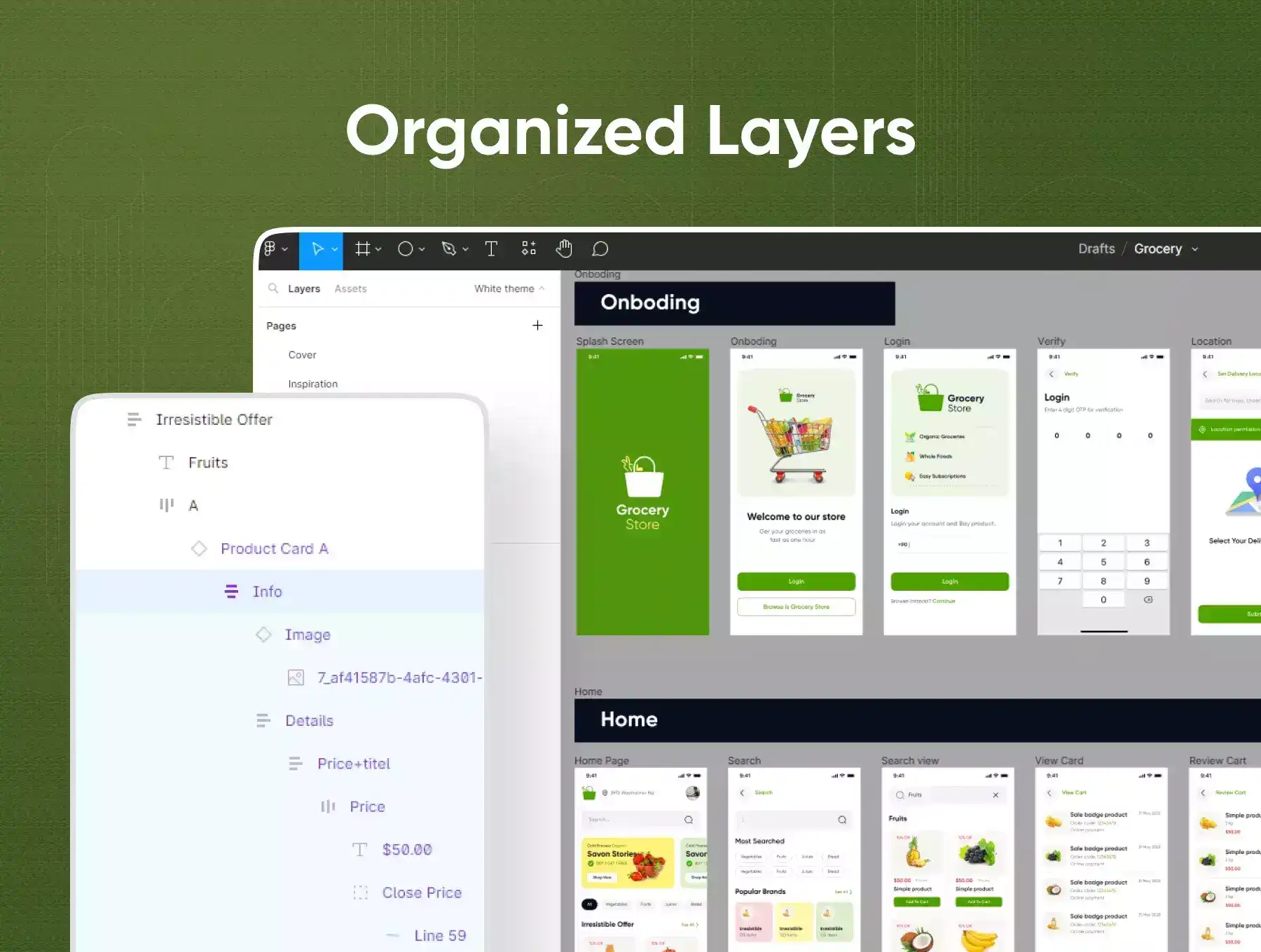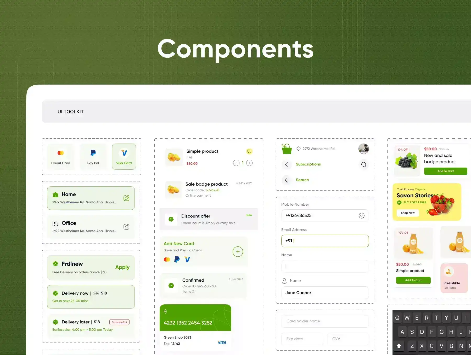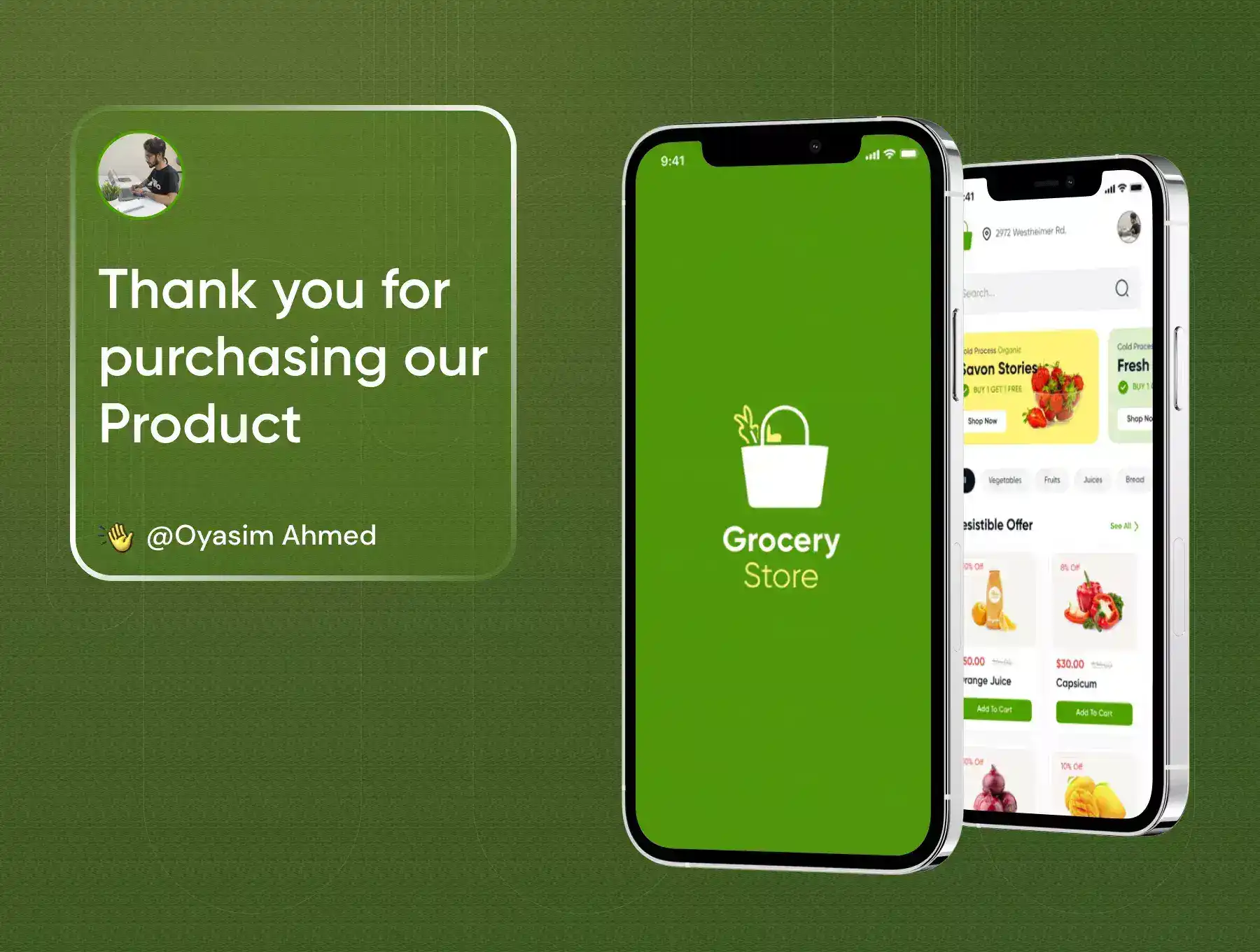 Grocery Store App UI Kit is a comprehensive solution for All of the e-commerce businesses. With 85+ app screens available in both dark and light versions, it offers versatility and customization options. The kit is built using Figma and features a fully automatic layout and well-organized layers, making it user-friendly and easy to work with. A style guide is included to ensure consistency, giving you the tools you need to maintain a cohesive look and feel throughout your app. Whether you're starting a new project or updating an existing one, the Grocery Store App UI Kit is a perfect choice.
