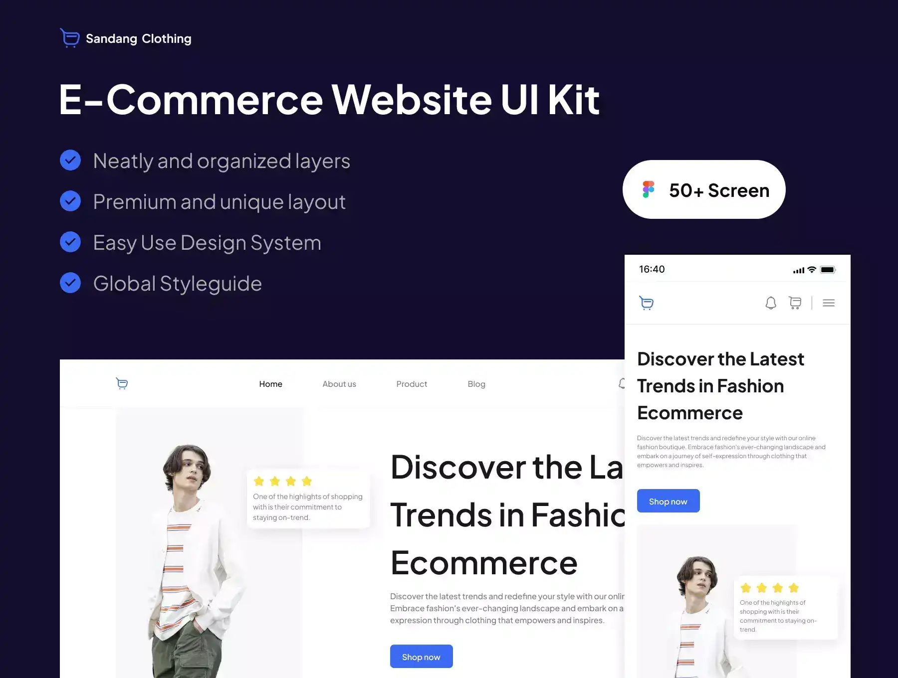 Sandang Clothing - E-commerce Website UI KIT. Perfect, fresh, and stylish UI Kit for building beautiful Landing Pages and Mobile Responsive.