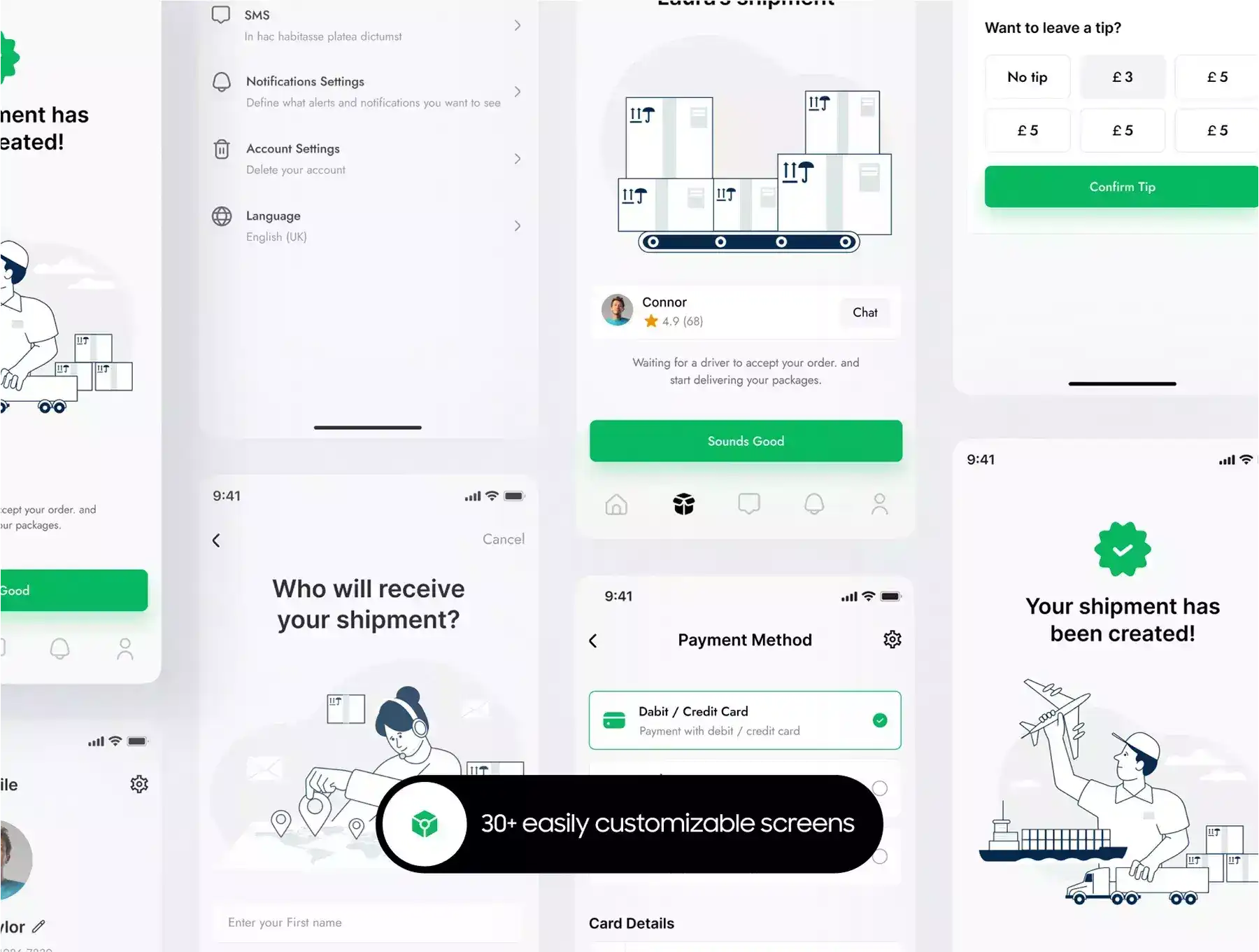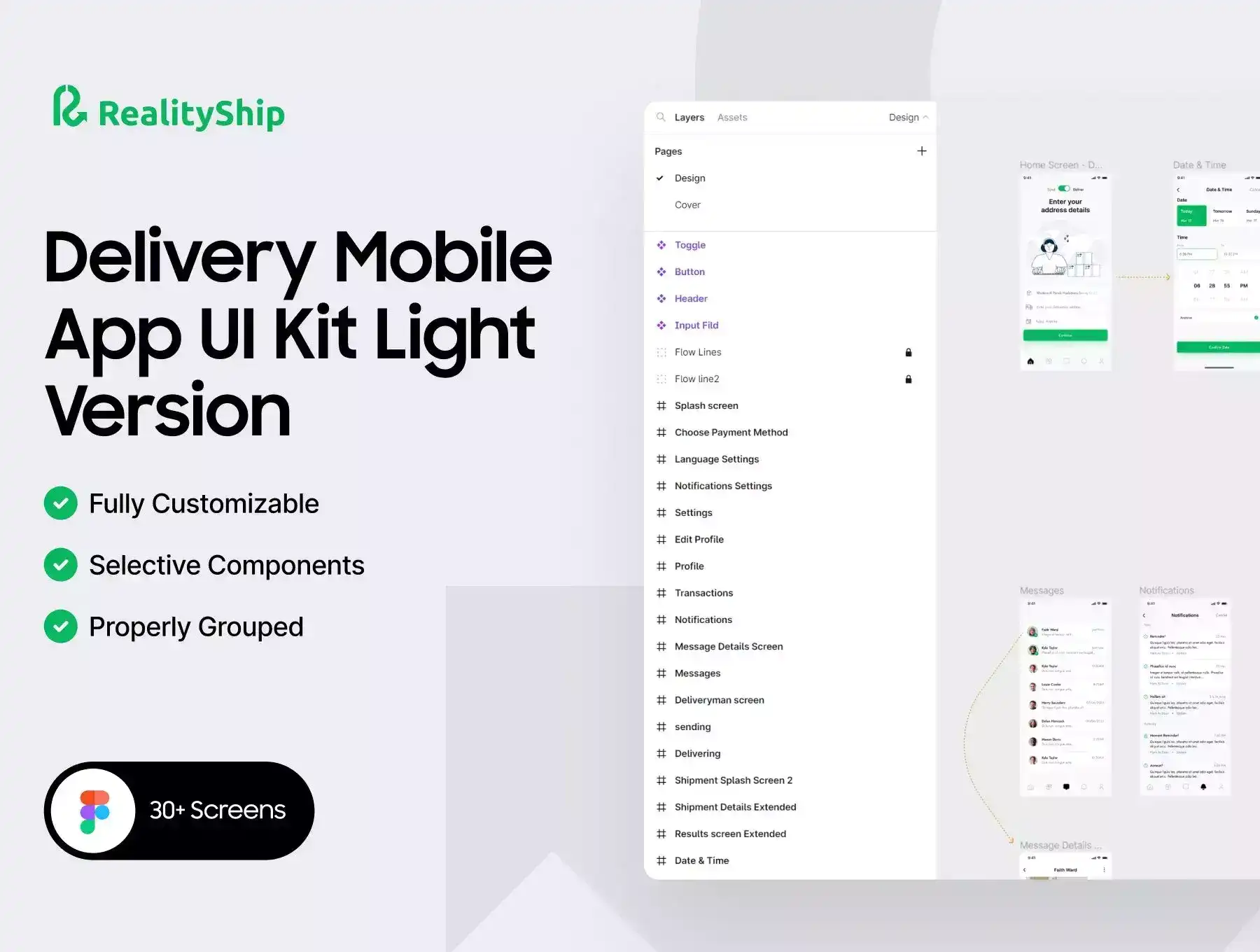 RealityShip is a delivery and shipping app UI kit Designed in Figma professionally designed by Monodeep Samanta.