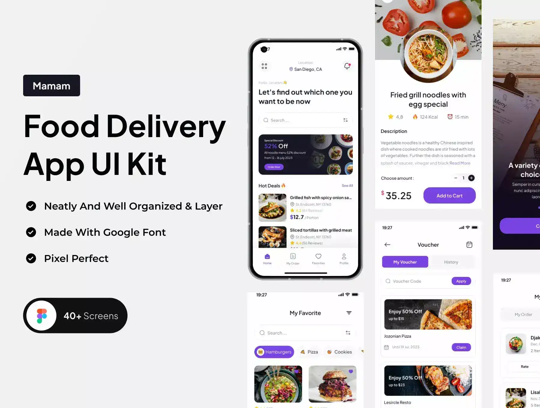 Mamam is a High Quality UI Kit of an Food Delivery Mobile App UI Kit. Mamam came with a modern minimalistic design. The kit has been equipped with grouping and naming for each group so that you can edit it more easily.