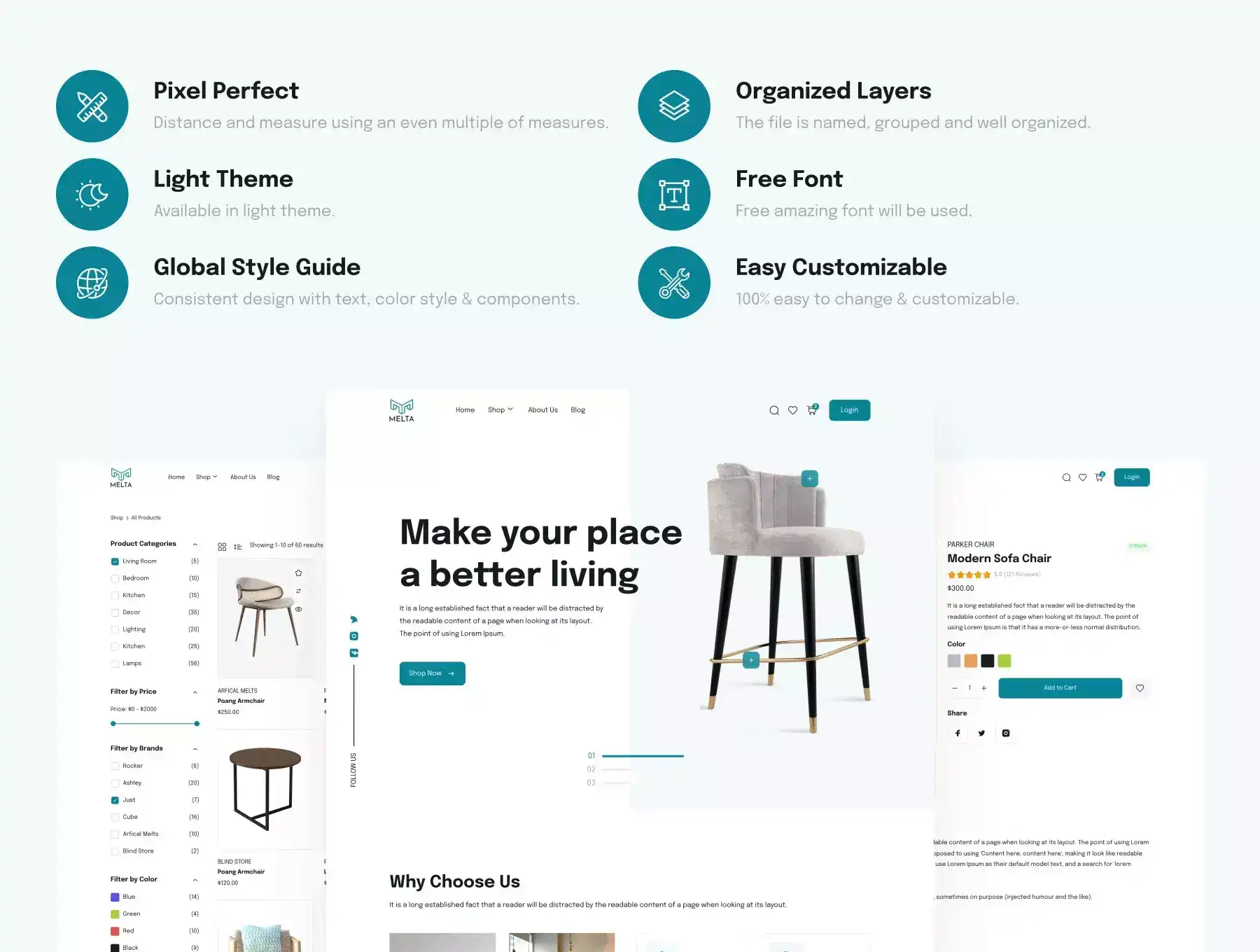 Whether you're an experienced developer or just starting out, our Furniture Ecommerce Web UI Kit will empower you to transform your vision into reality. With its intuitive interface and pixel-perfect designs, you can confidently create an outstanding website that perfectly represents your healthcare brand.