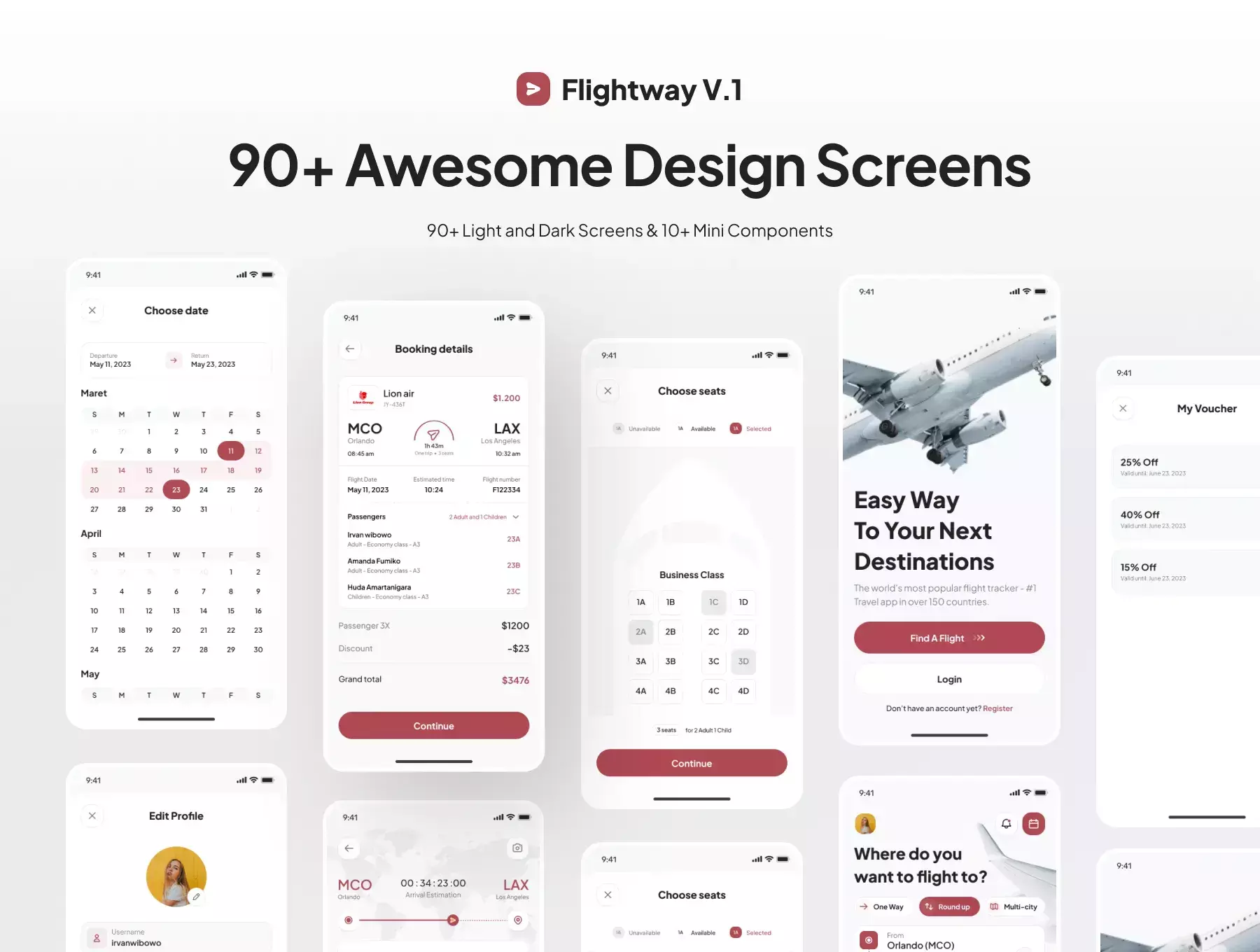 Flightway is Multiple Flight Booking App UI Kit with clean, neat and modern design. This UI Design Template will boost your design process and will help you develop an outstanding experience for flight booking business.