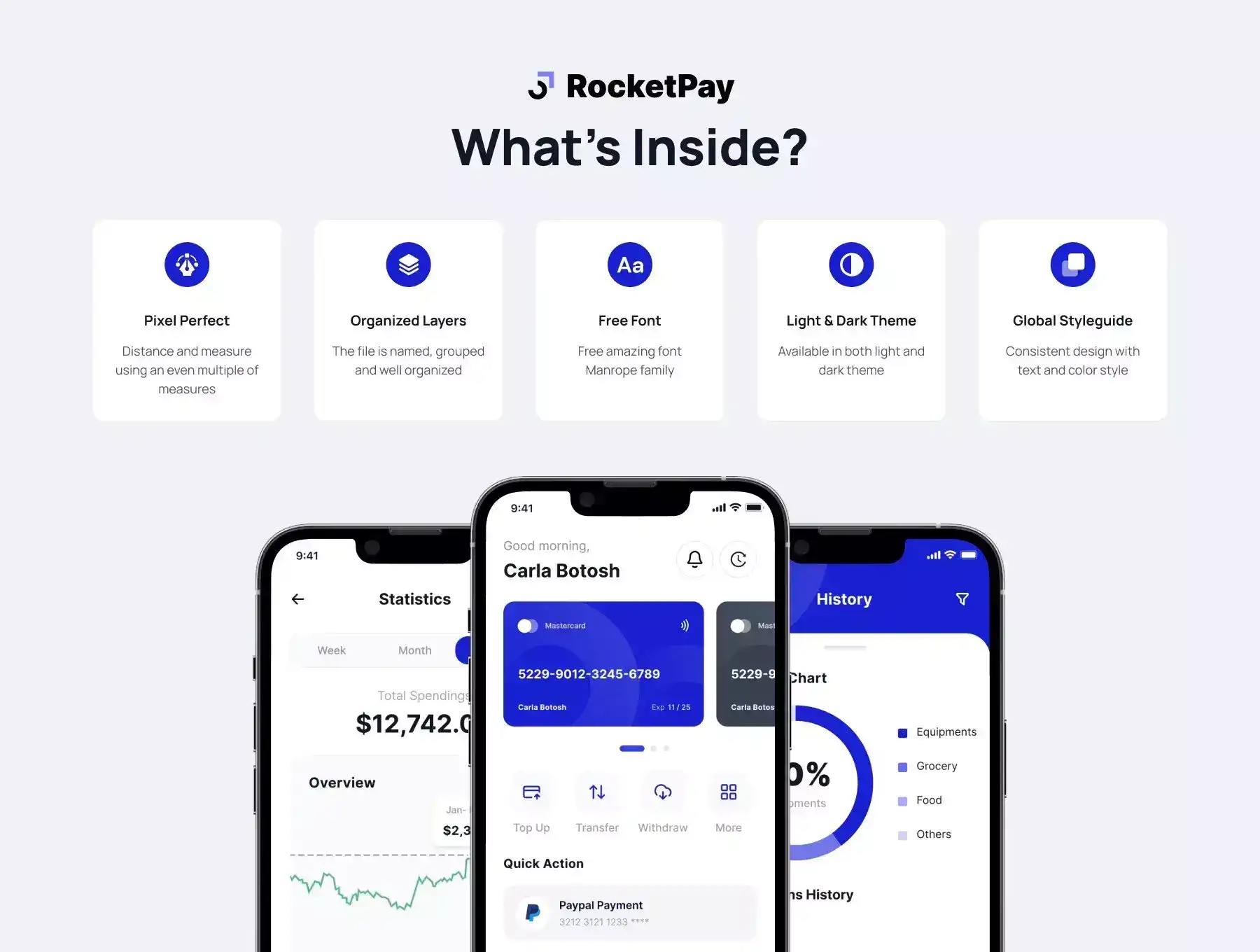 Rocketpay is a premium Financial Planning & Digital Wallet App UI Kit containing 80+ high-quality screens and easy to use in Figma.