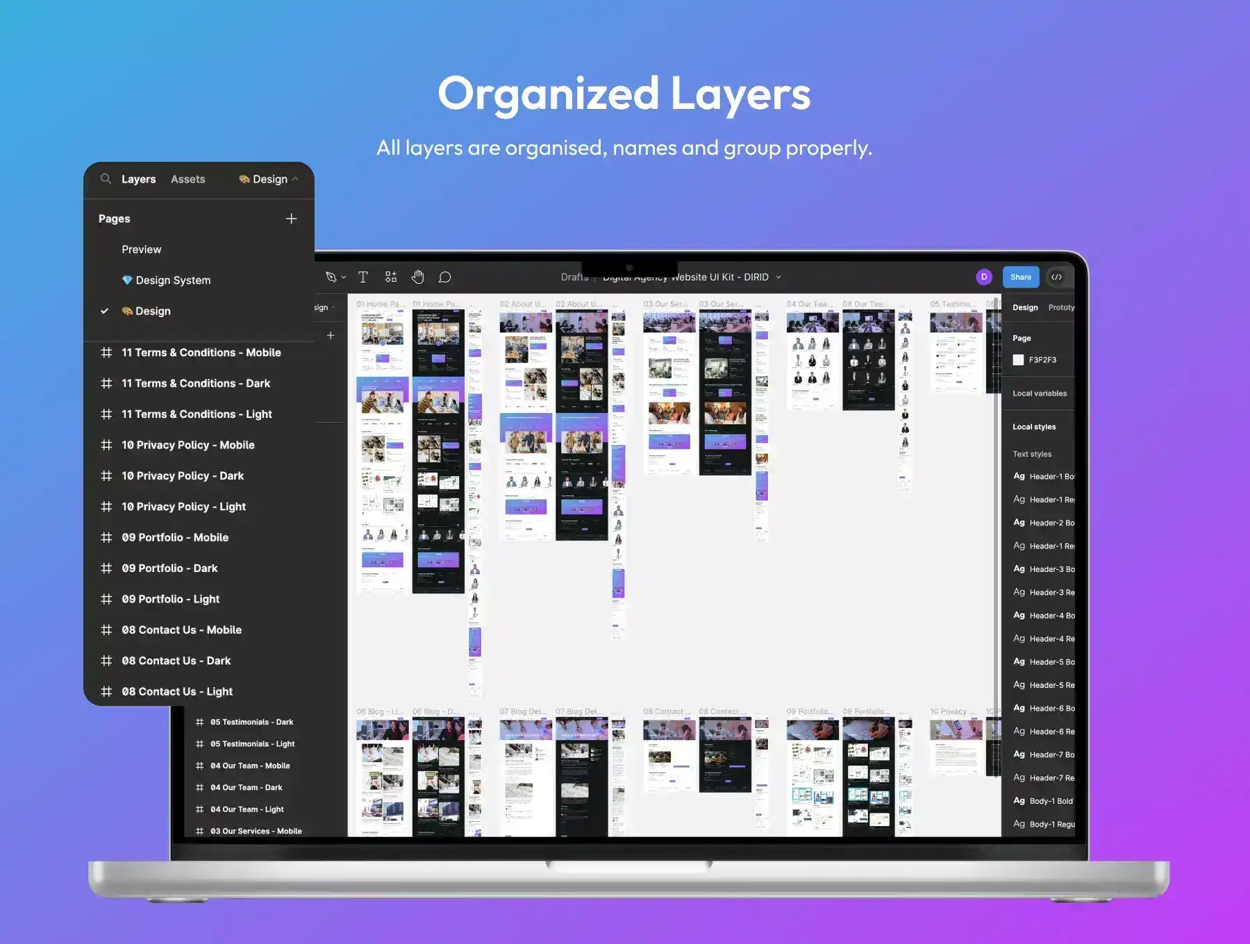 Introducing our Digital Agency Web UI Kit, an exceptional collection of over 30+ meticulously crafted screens specifically tailored for the digital agency. This comprehensive kit is designed for effortless use in Figma, allowing you to effortlessly customize every aspect of the design. Leverage Figma's powerful features, including global color, font styles, dynamic components, and variants, to create a unique and captivating website.