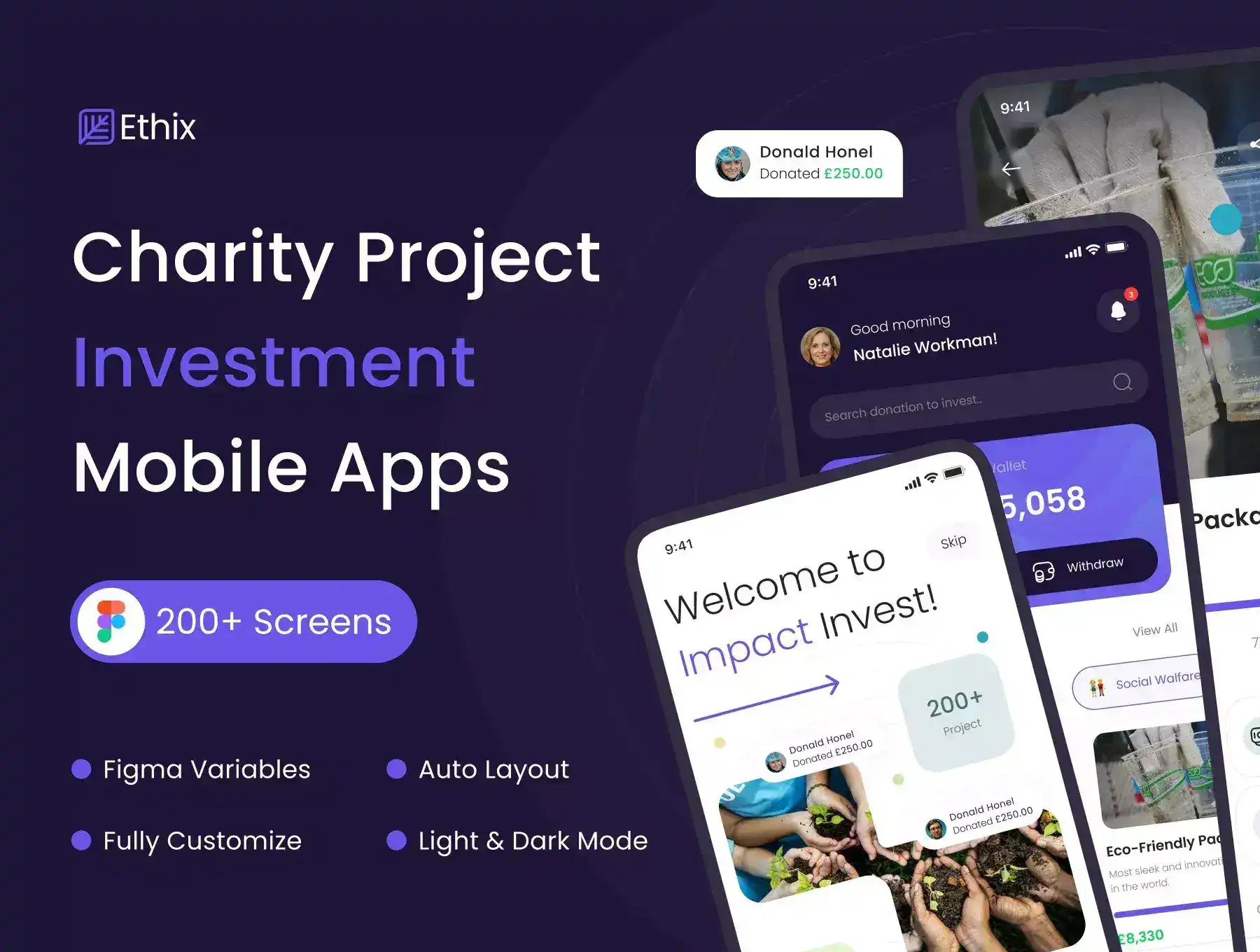 Introducing the Ethix App UI Kit, your comprehensive solution for crafting seamless and impactful fintech experiences. With a meticulously designed collection of over 120+ screens, spanning both light and dark modes, our UI kit is your gateway to creating an intuitive and visually stunning investment platform.