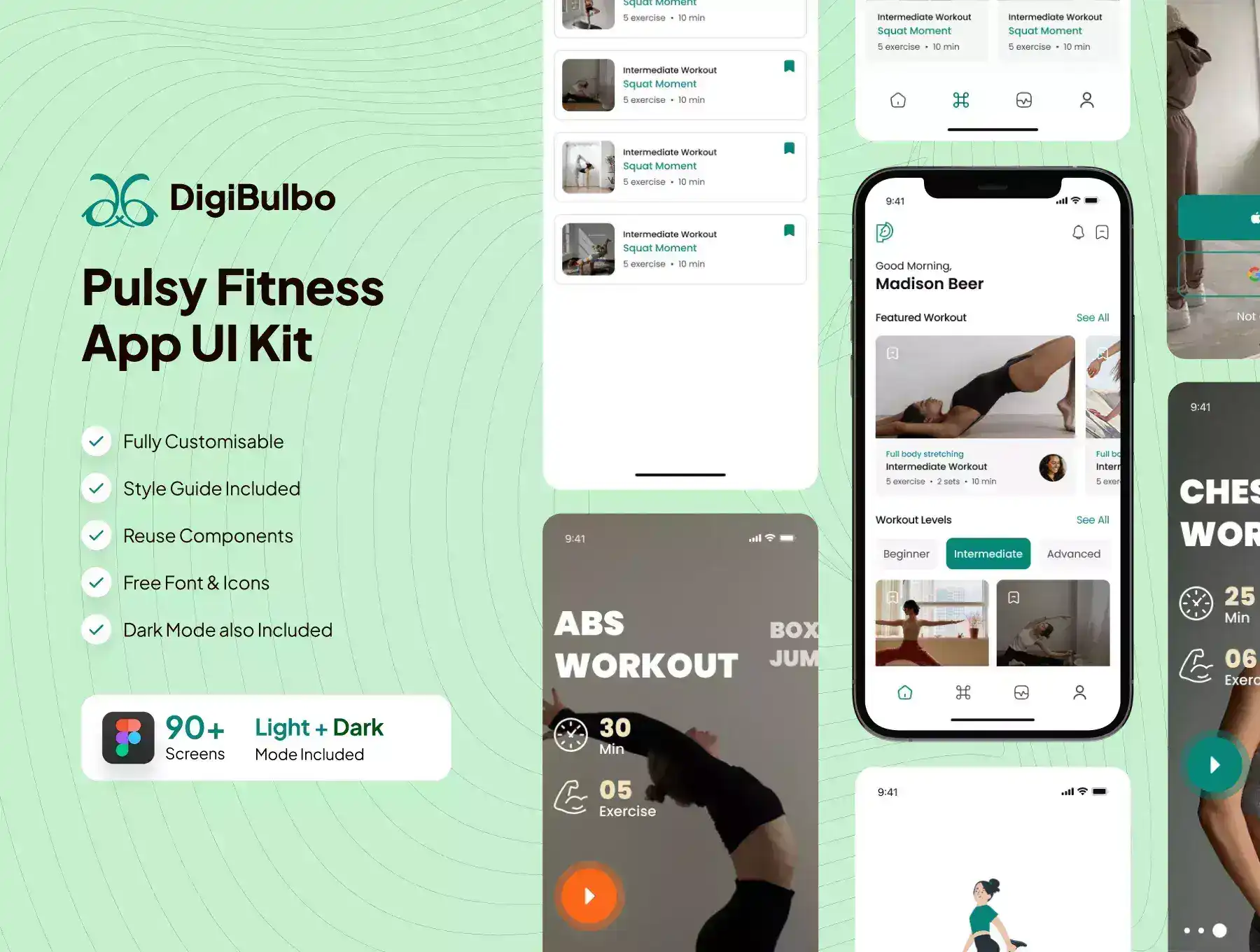 Elevate your fitness journey with Pulsy, a premium Fitness & Workout App UI Kit encompassing over 90+ high-quality screens designed for effortless use in Figma.