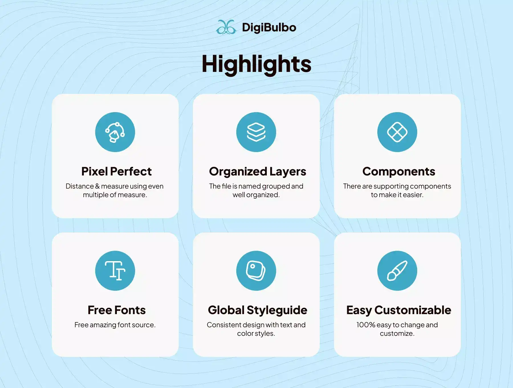 Crafted with utmost precision, the UI Kit is available in Figma formats, ensuring versatility and convenience for your design workflow. Every screen, element, and component is thoughtfully named and impeccably organized, facilitating a smoother customization process.