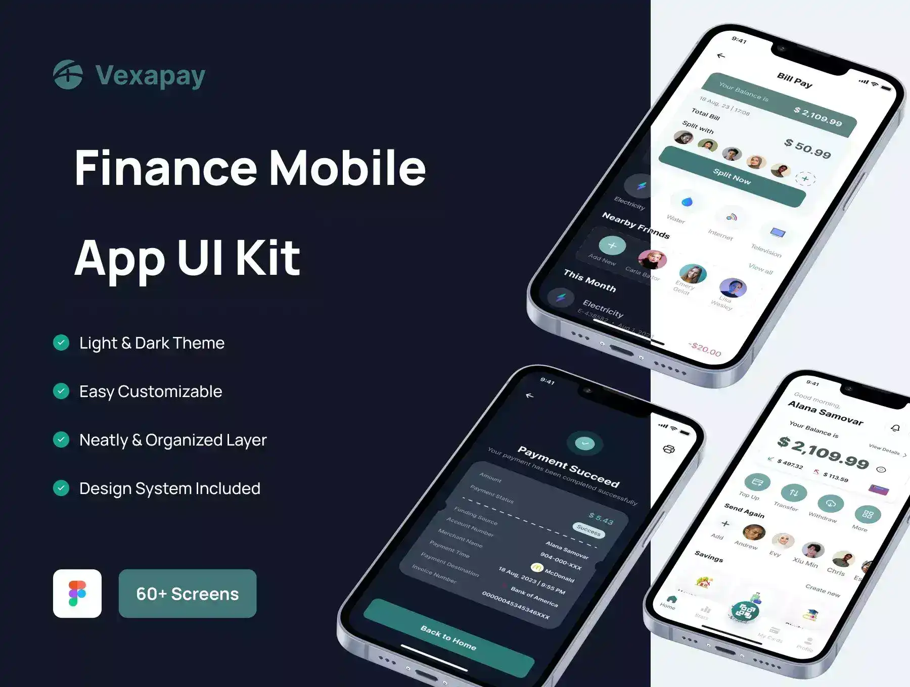 Vexapay is a Modern Financial & Digital Wallet App UI Kit containing 80+ high-quality screens and easy to use in Figma.