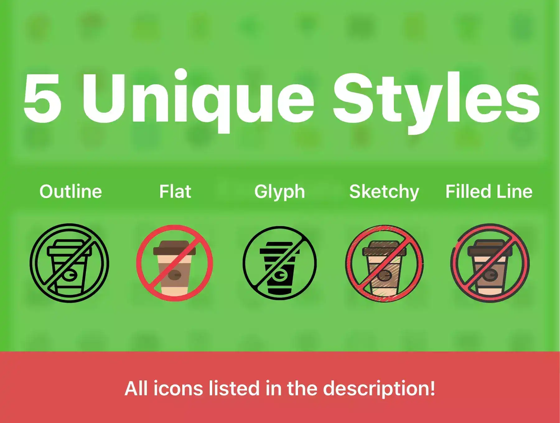 5 unique styles: Outline, Flat, Glyph, Sketchy, Filled Line