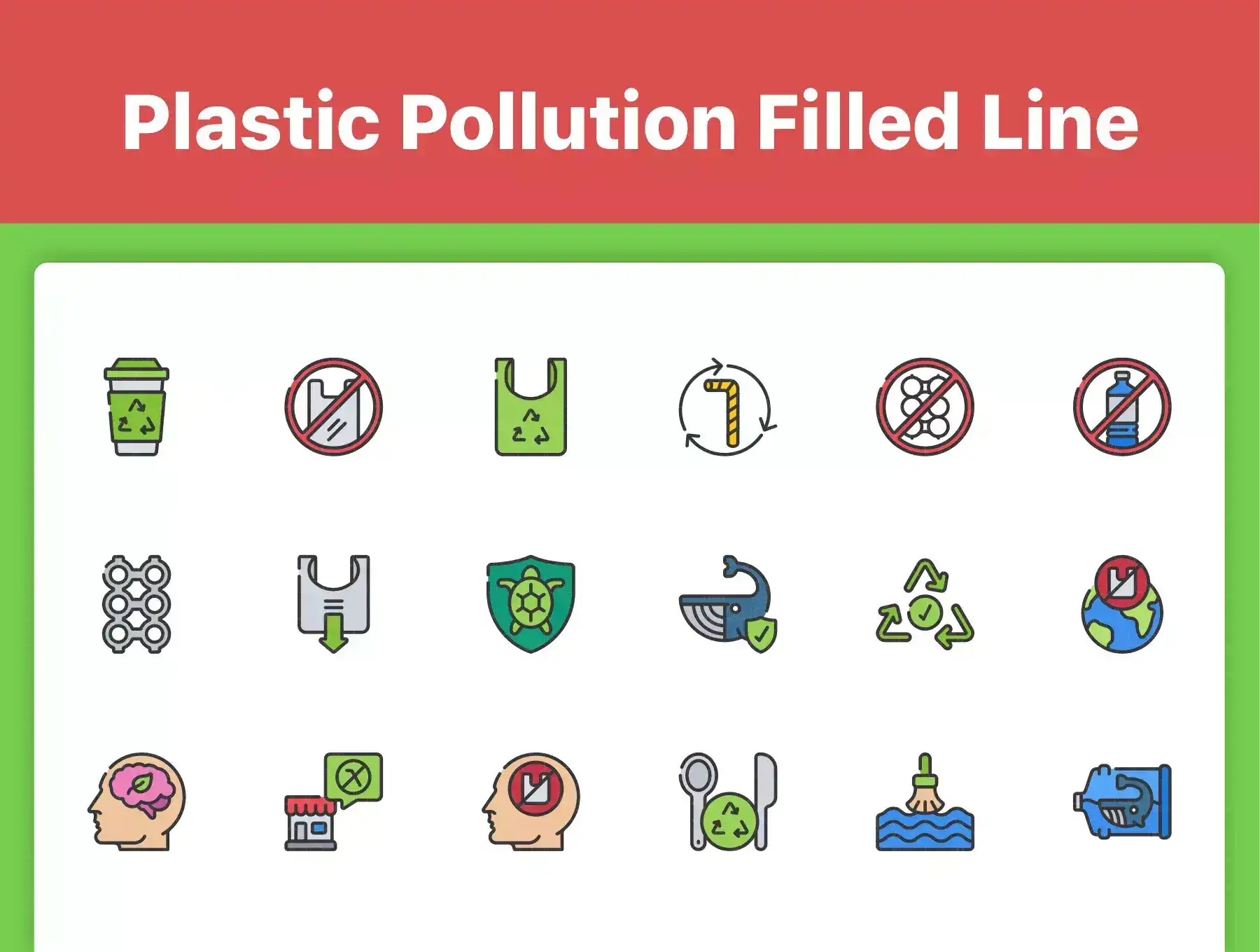 The Plastic Pollution Icon set is made up of 30 line icons created in 5 different style variations, 150 icons in total! All of the icons have been created with the same style, consistency and technical quality. Create amazing projects and meet tight deadlines with these easy to use icons!