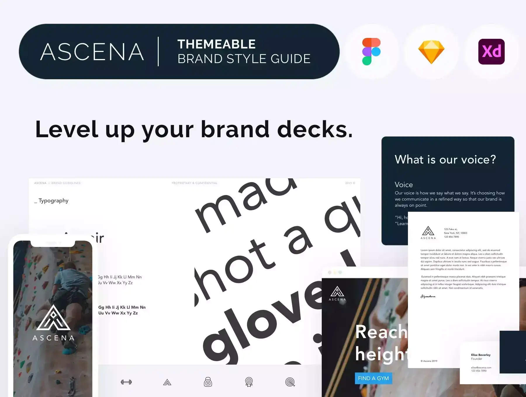 Take the brands you create to the next level. This template is easily customizable to change all logos and colors. There are 49 different artboards that cover the basics from showing off the logo, colors, iconography, etc. All the way to Voice & Tone and greater details that shape a good brand.