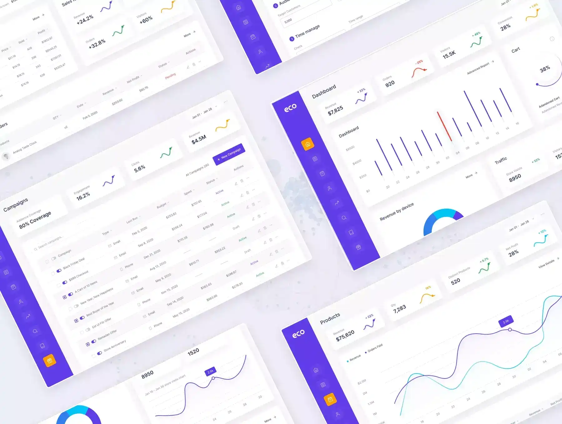 Show my Eco - Ecommerce Analytics Admin Dashboard. Get the right answers. Make better decisions. Grow your sales. What problems it is solving. Which of my products sell best? How often do they buy? How many carts get abandoned? What’s my profitability? Who are my top customers? Where are my sales coming from?