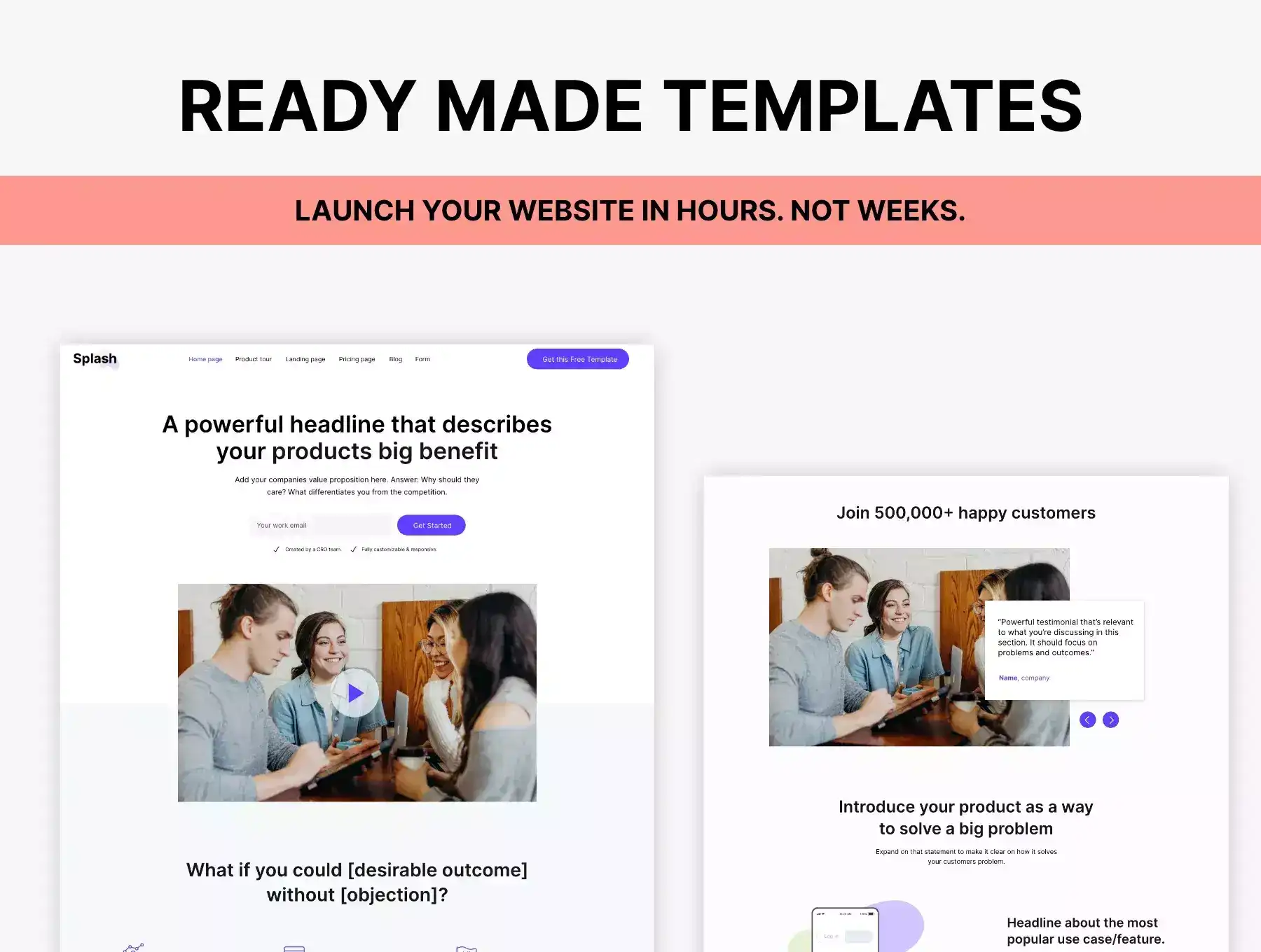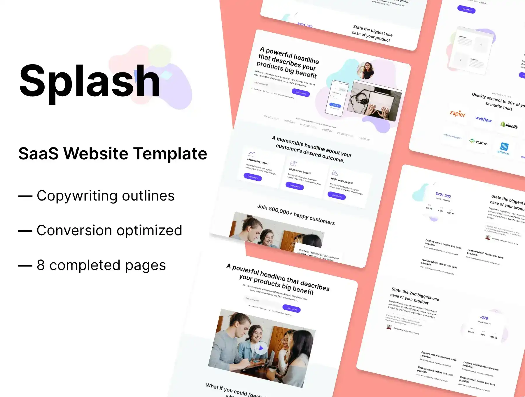 Splash Website Template was built with performance, speed, and powerful messaging in mind. If you need to create your SaaS website quickly without delays, look at our ready-made templates.