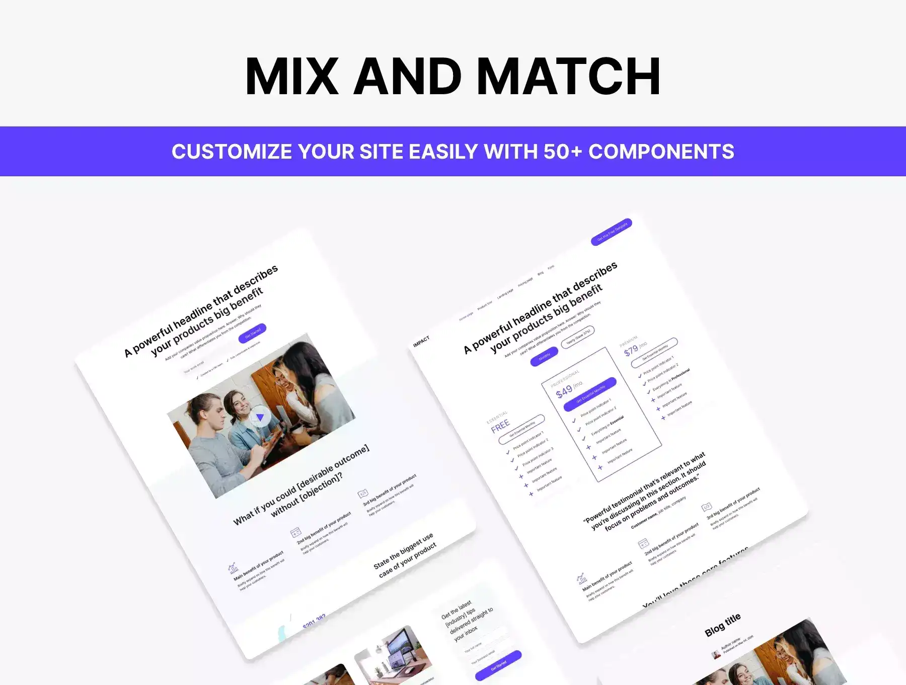 **With our set of pages, you can easily mix and match to build new pages, customize to your preferences, replace images and more.**
